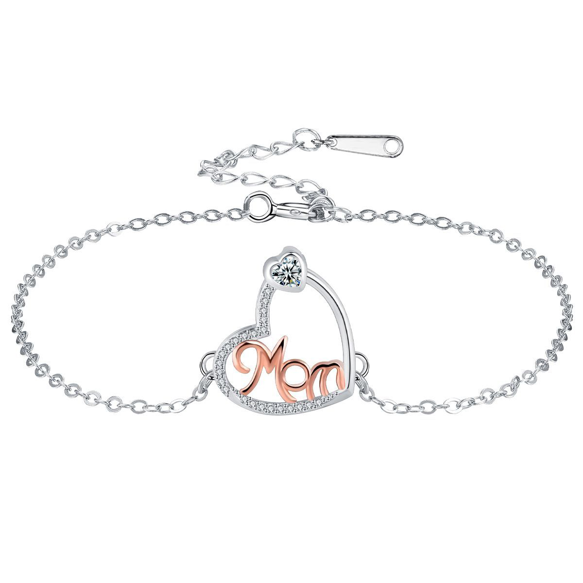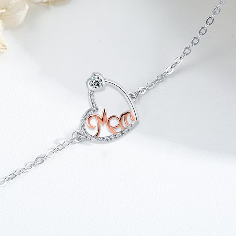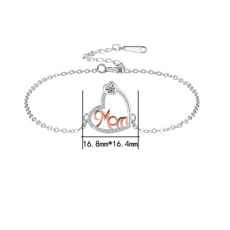Brass Bracelet, with 304 Stainless Steel Chain, with 4cm extender chain, Heart, plated, Mother Day Jewelry & micro pave cubic zirconia & for woman, Length:Approx 17 cm, Sold By PC