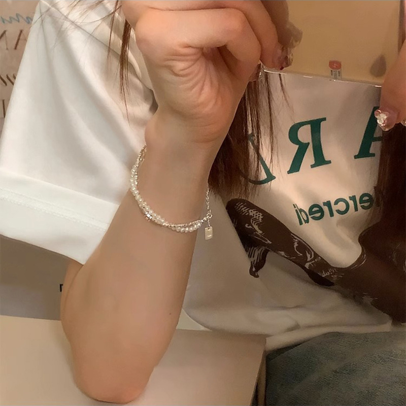 Brass Bracelet, with Plastic Pearl, plated, Double Layer & for woman, Length:Approx 6-8 Inch, Sold By PC
