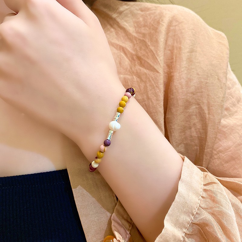 Brass Bracelet, with Synthetic Gemstone & Plastic Pearl, with 5.5cm extender chain, plated, fashion jewelry & for woman, silver color, Length:Approx 14.5 cm, Sold By PC