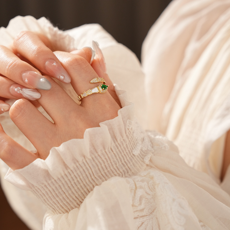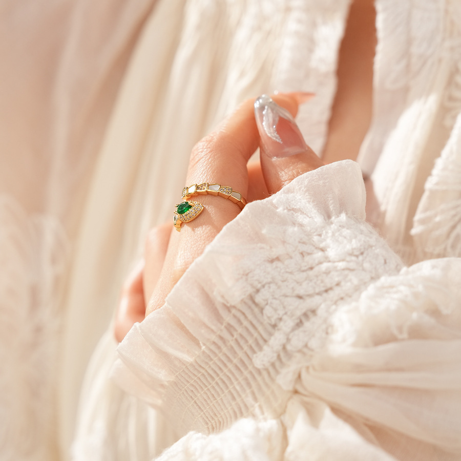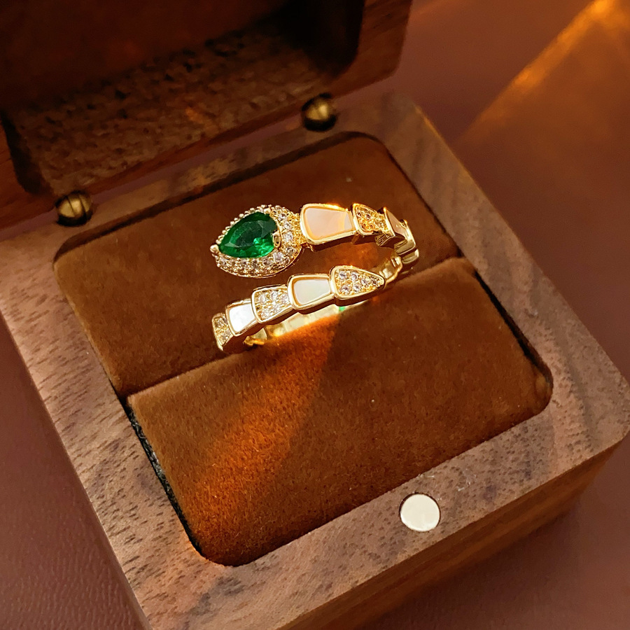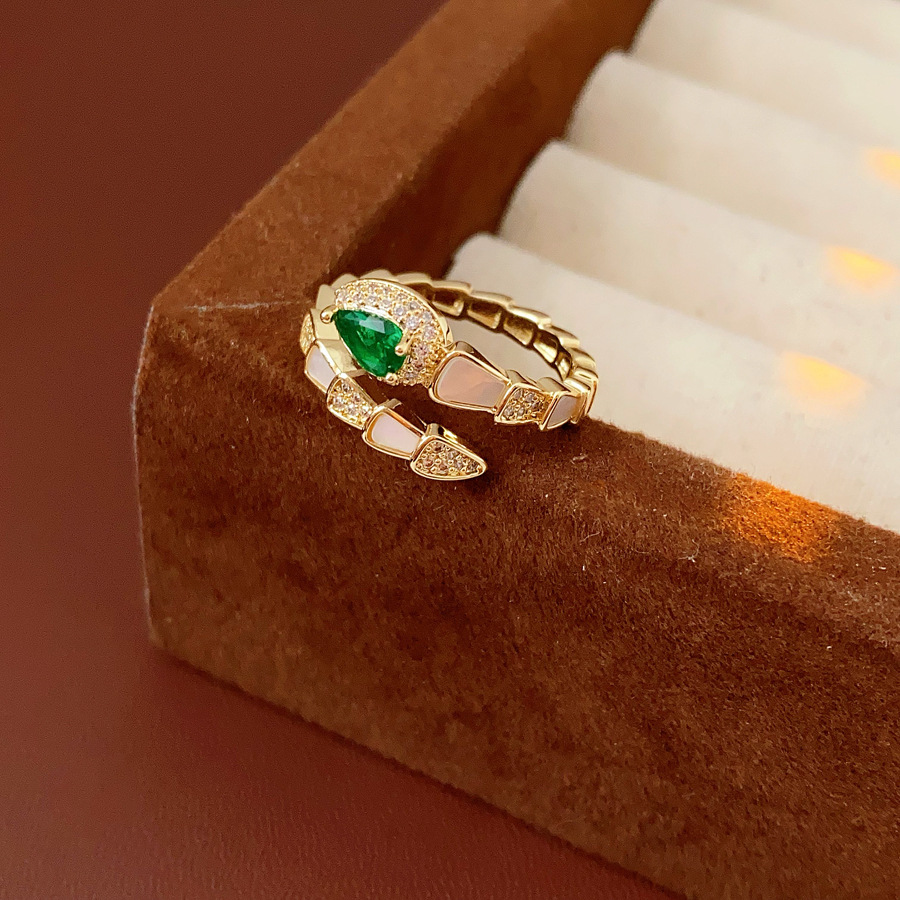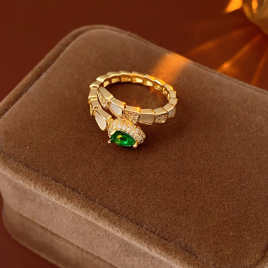 Brass Cuff Finger Ring, with Resin, Snake, gold color plated, micro pave cubic zirconia & for woman, US Ring Size:6-8, Sold By PC