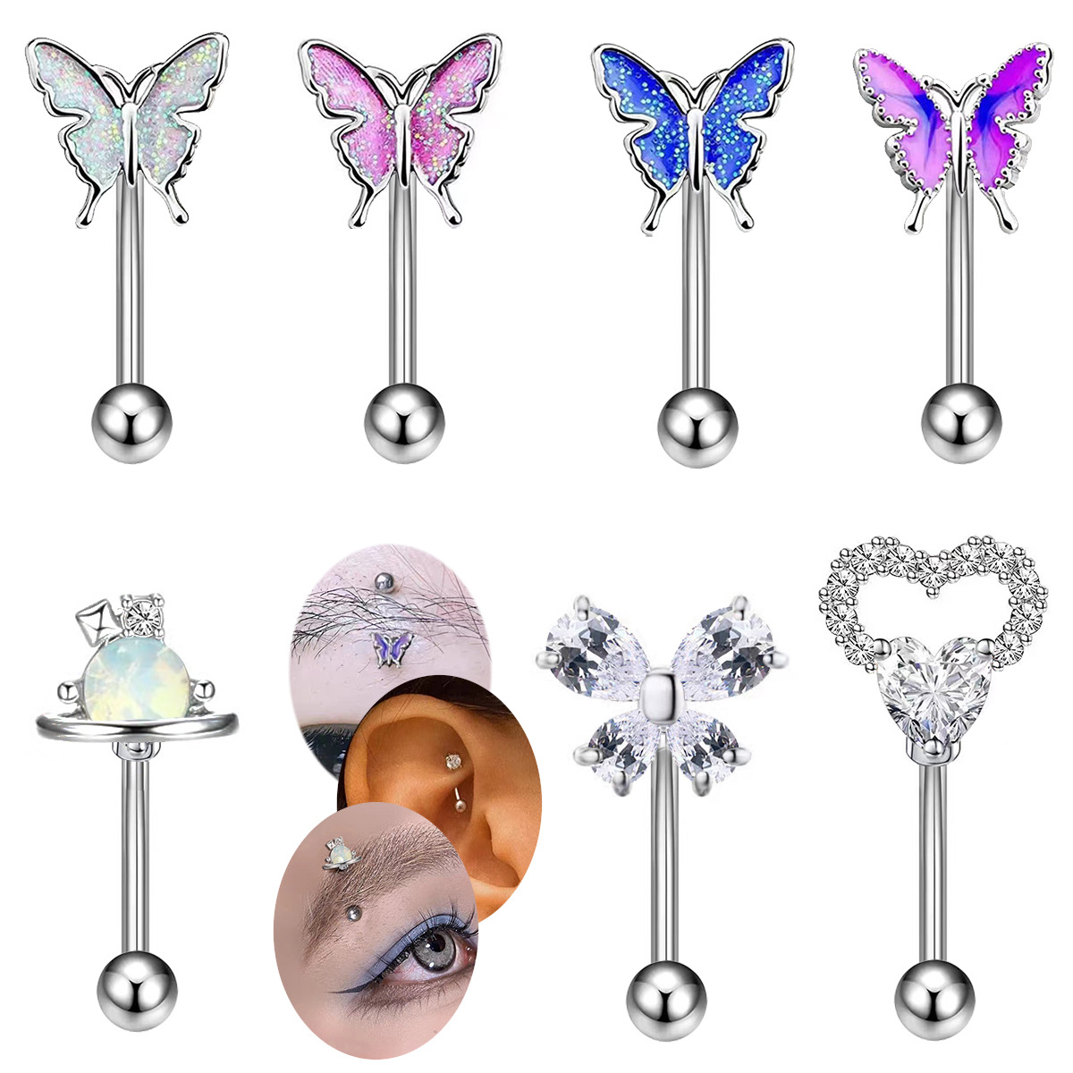 Brass Piercing Barbell, with 316L Stainless Steel, plated, micro pave cubic zirconia & for woman
