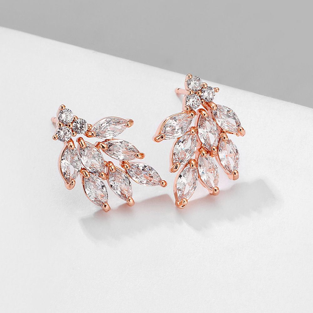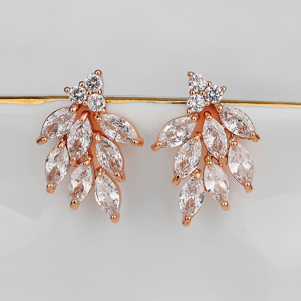 Cubic Zirconia Micro Pave Brass Earring, rose gold color plated, micro pave cubic zirconia