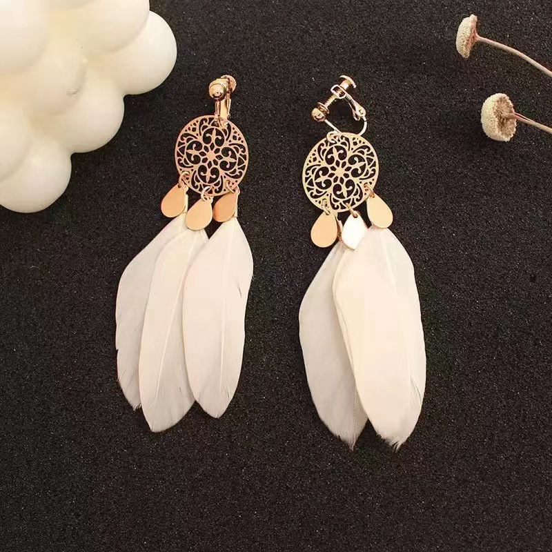 Brass Drop Earring, with Feather, gold color plated, folk style & different styles for choice & for woman, earring length 60-95mm, Sold By Pair