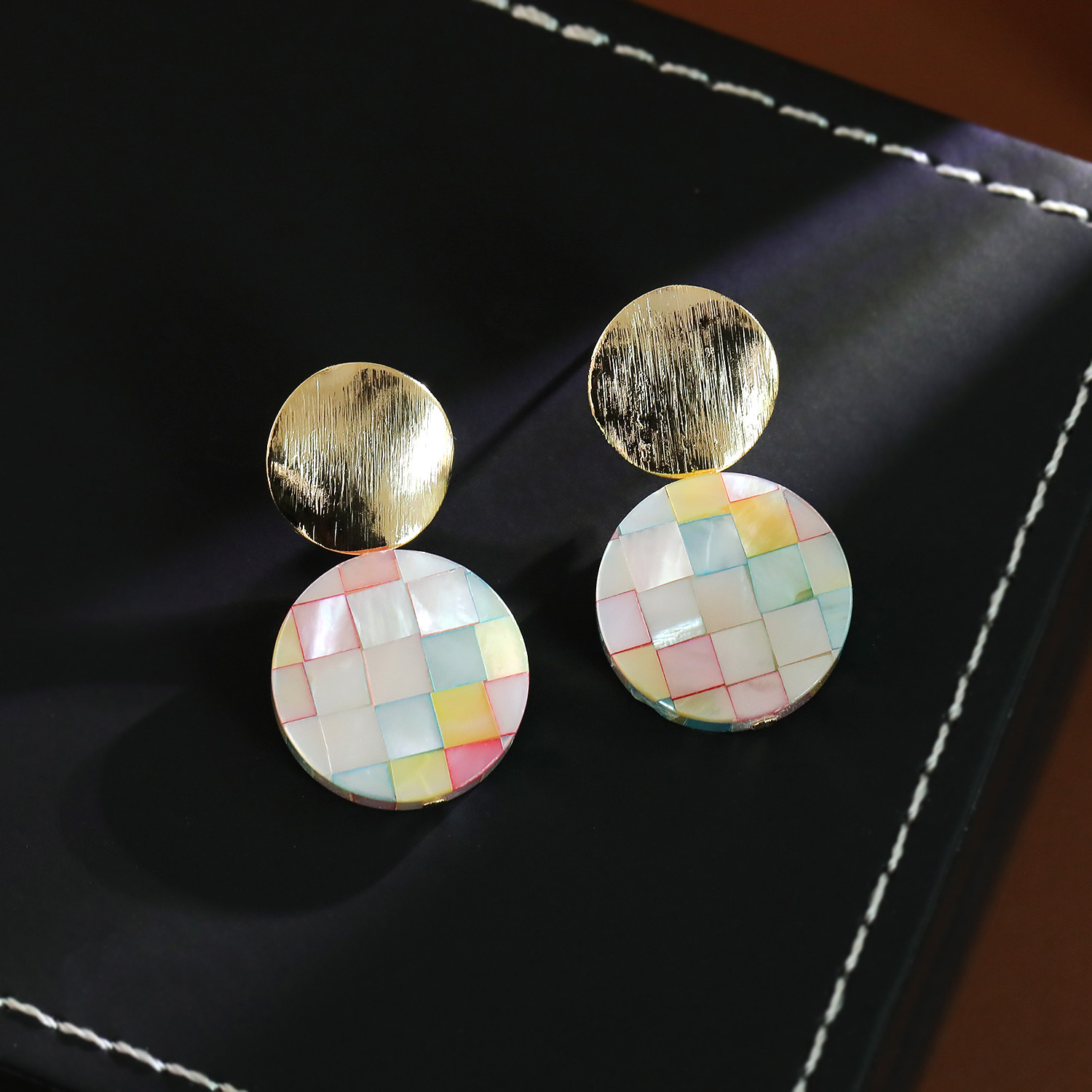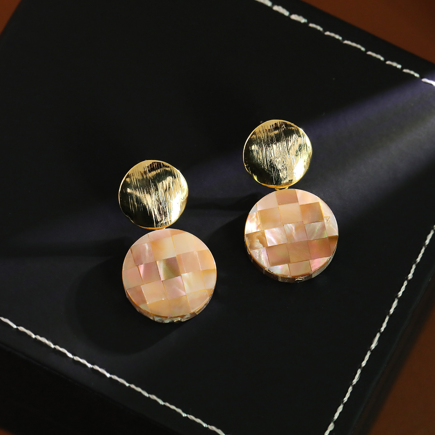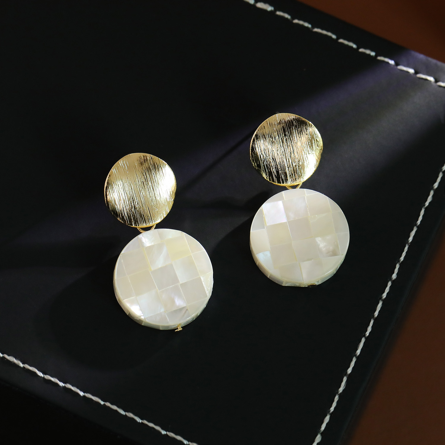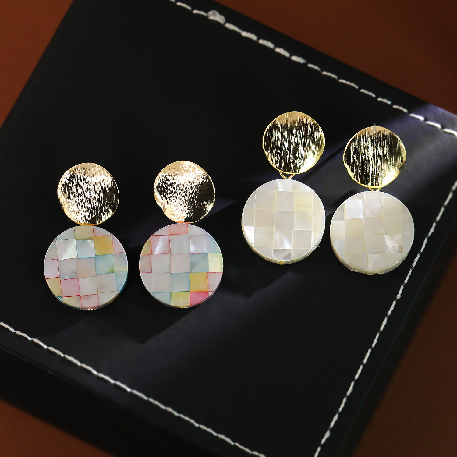 Brass Drop Earring, with Shell, 14K gold plated, fashion jewelry & brushed & for woman, more colors for choice, 35x15mm, Sold By Pair