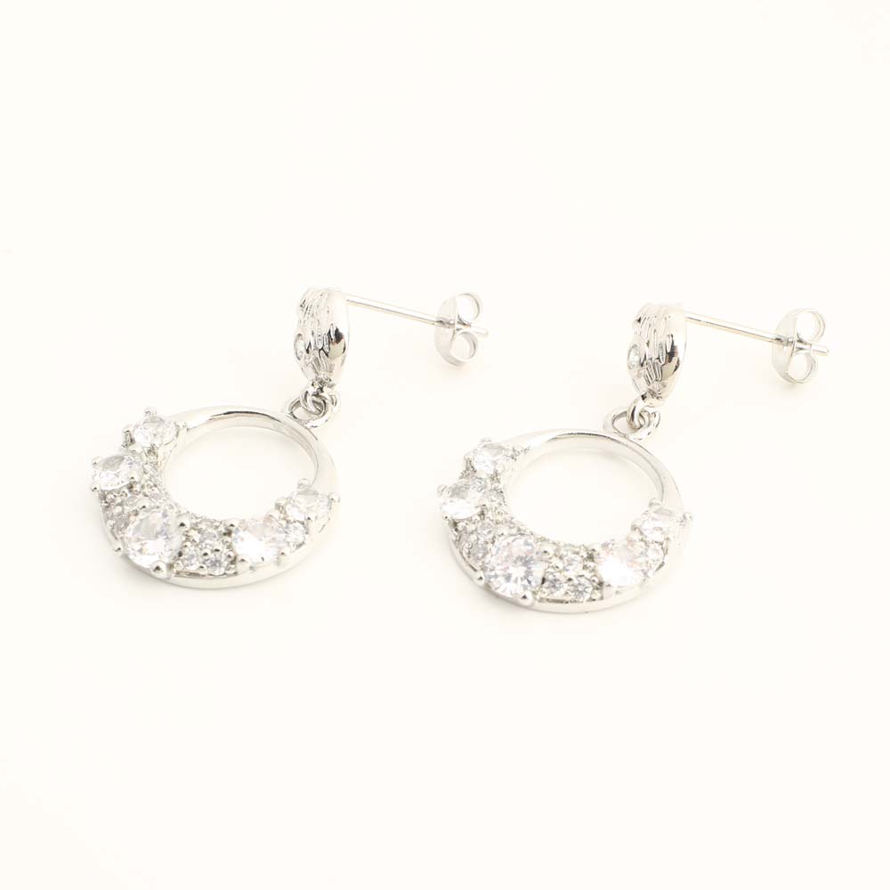 Brass Drop Earring, Flat Round, real silver plated, lead & cadmium free