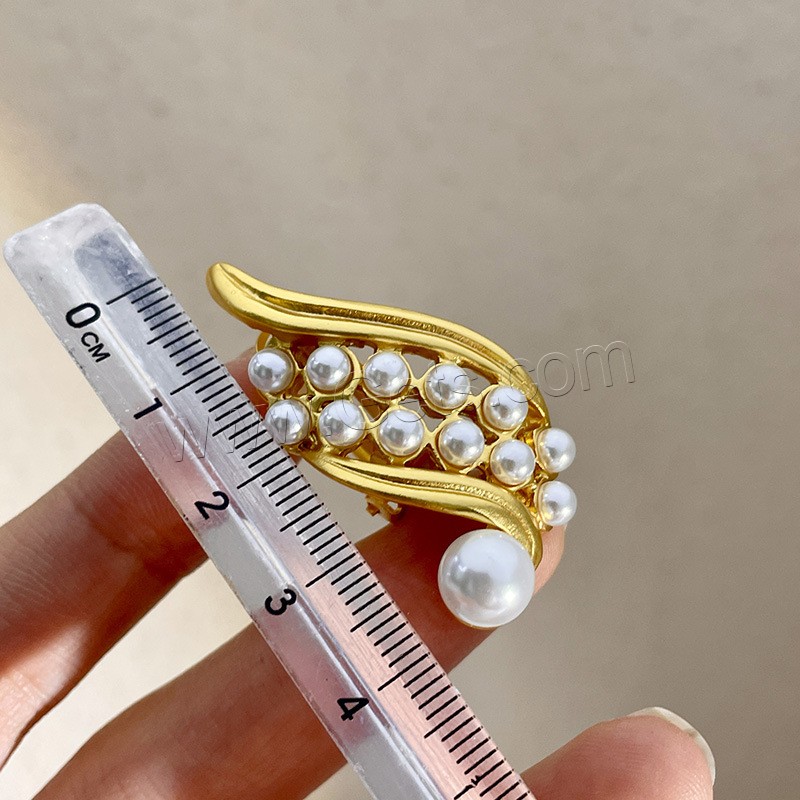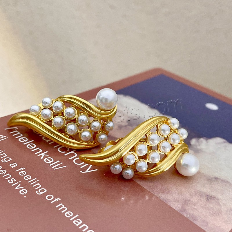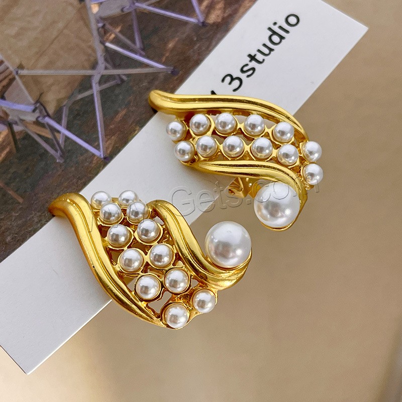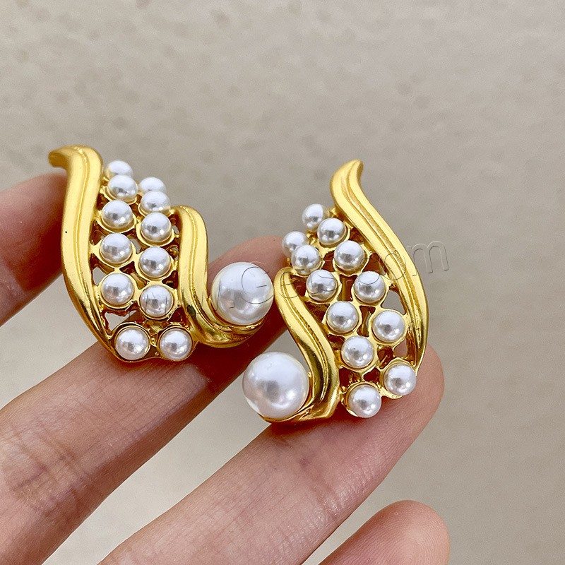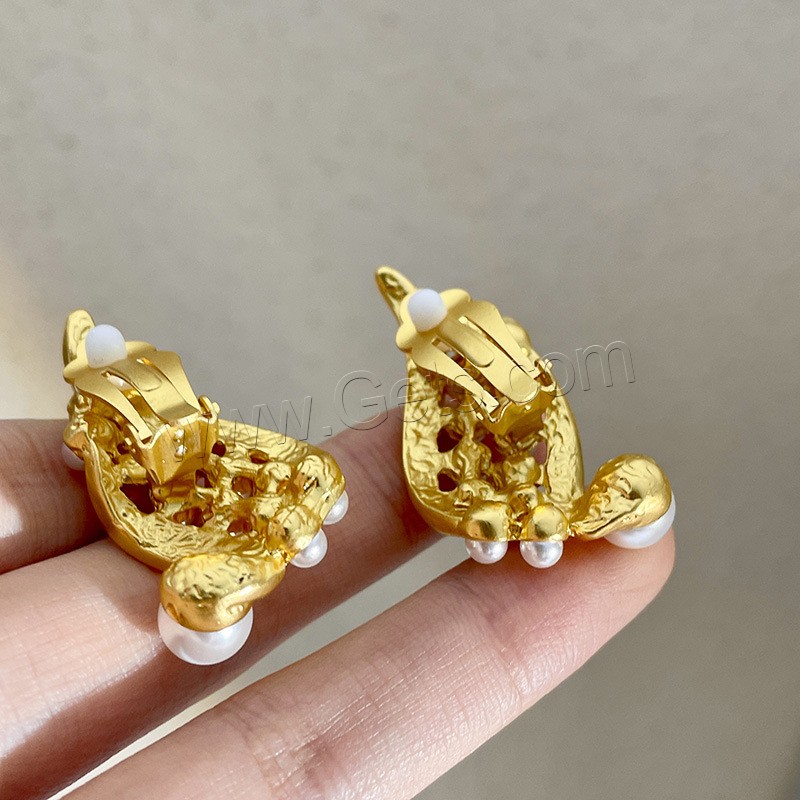 Brass Earring Clip, with Plastic Pearl, real gold plated, fashion jewelry & for woman, golden, 40mm, Sold By Pair