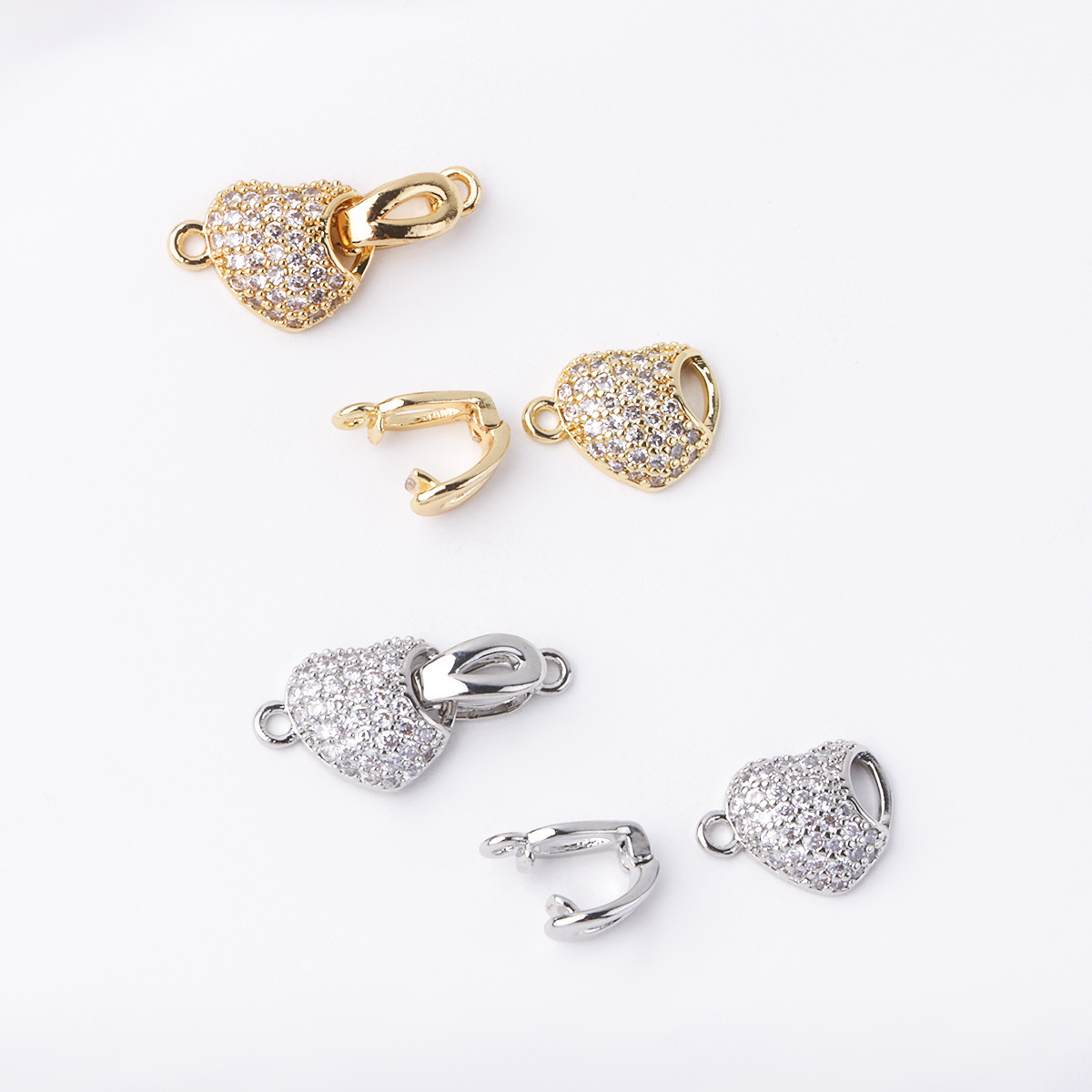Brass Hook and Eye Clasp, Heart, plated, DIY & with rhinestone, more colors for choice, Sold By Set