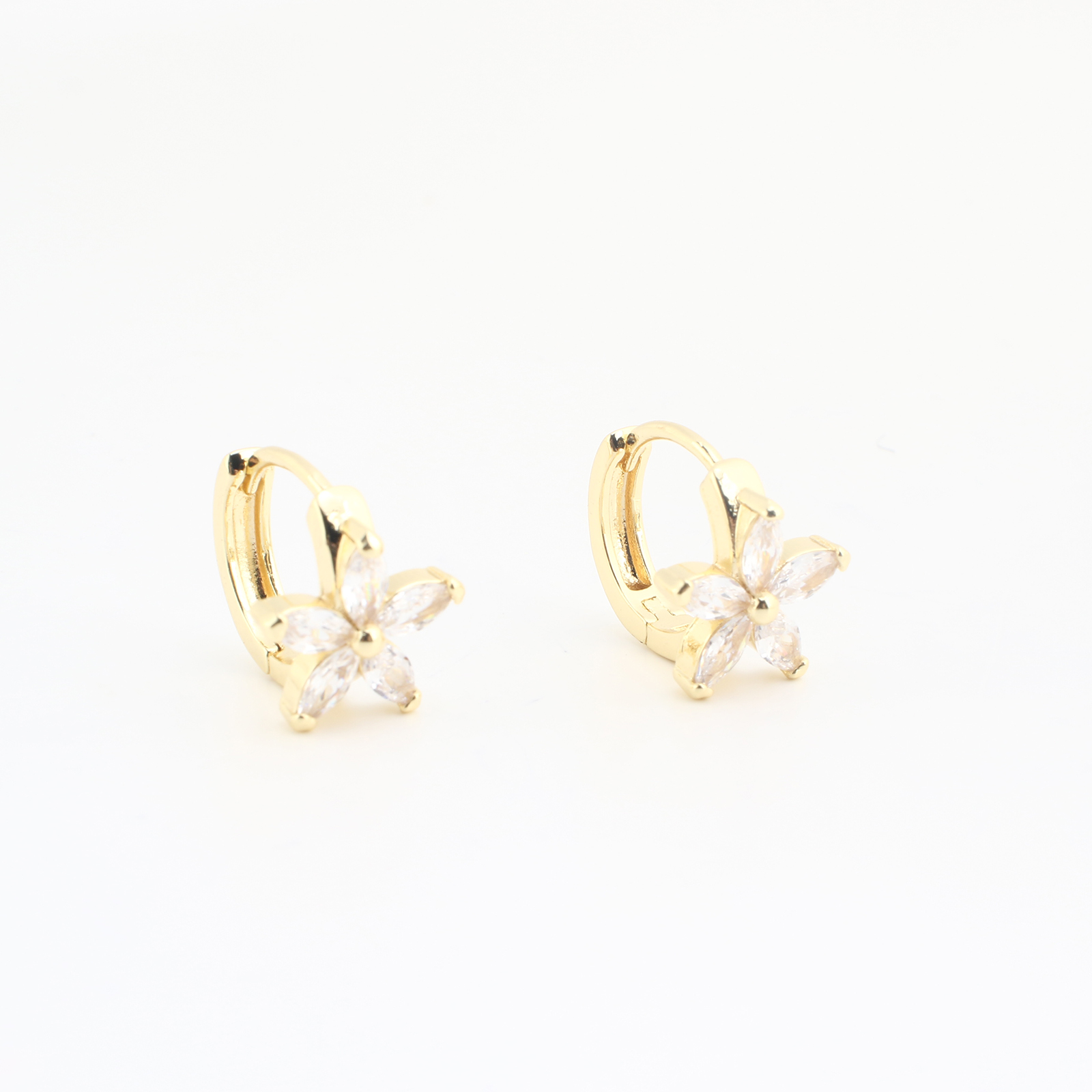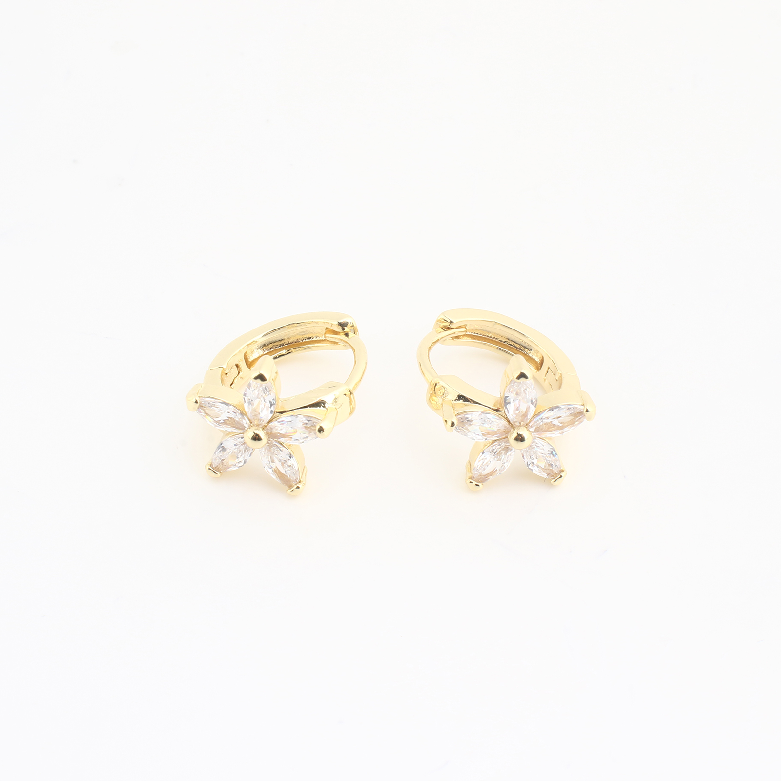 Brass Huggie Hoop Earring, Flower, gold color plated, for woman & with rhinestone, 15x13x6mm, 20PCs/Bag, Sold By Bag