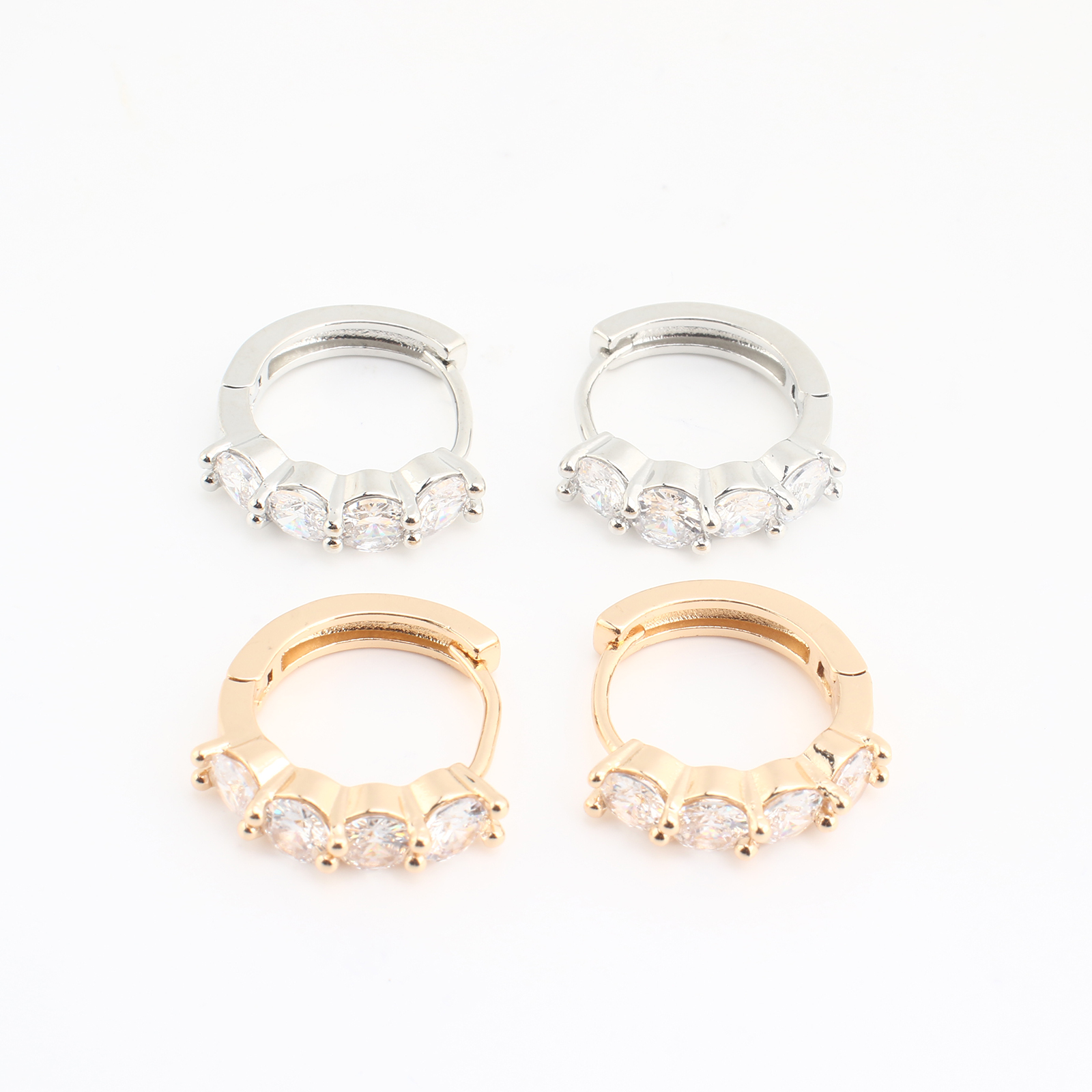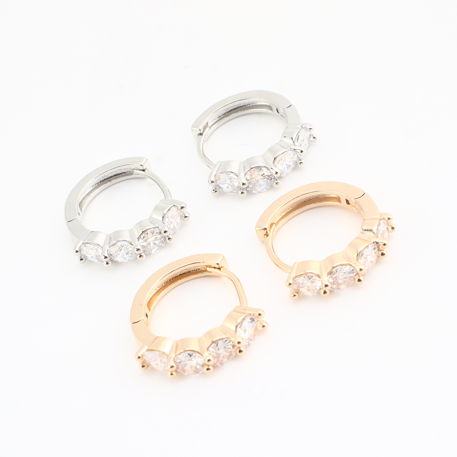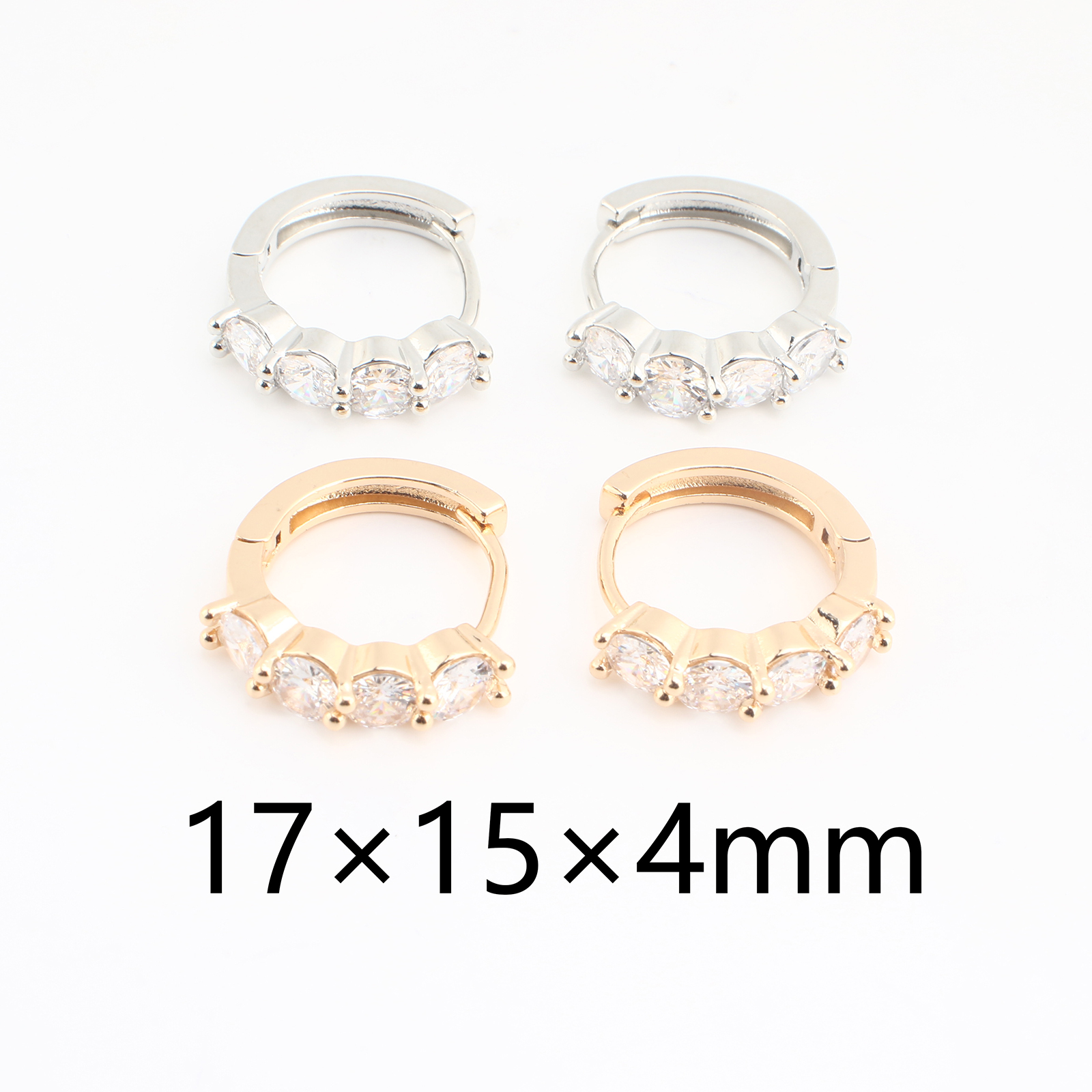 Brass Huggie Hoop Earring, plated, for woman & with rhinestone, more colors for choice, 20PCs/Bag, Sold By Bag