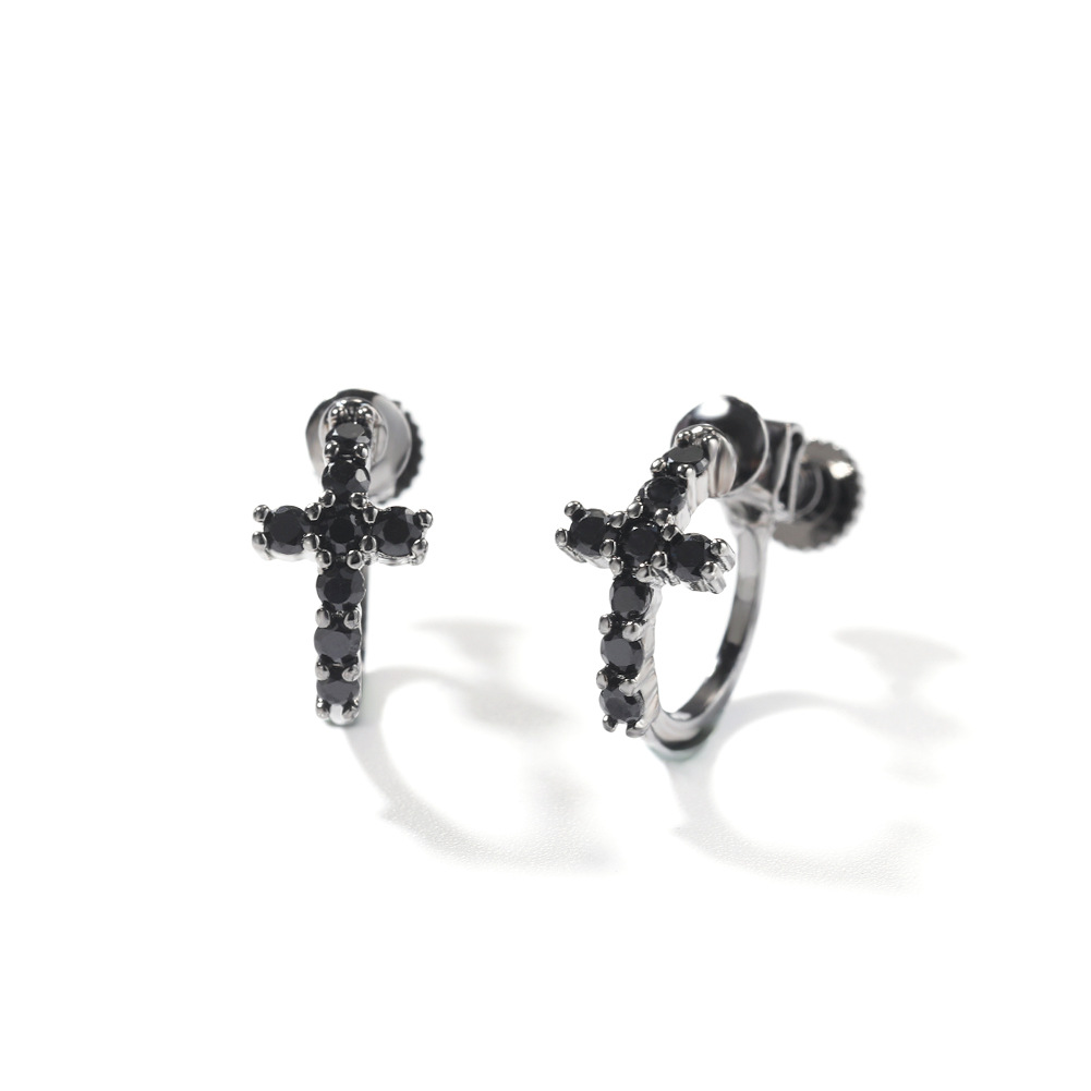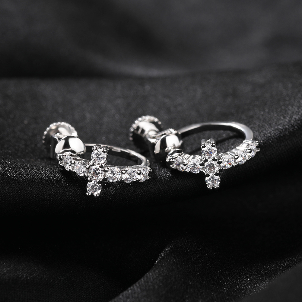 Brass Huggie Hoop Earring, Cross, plated, micro pave cubic zirconia & for man, more colors for choice, Sold By Pair