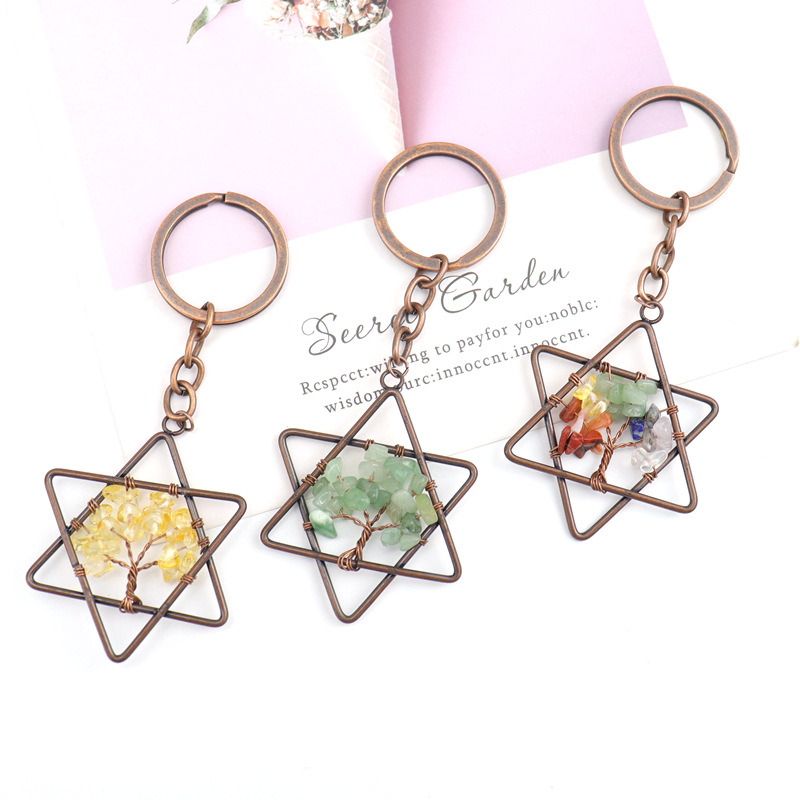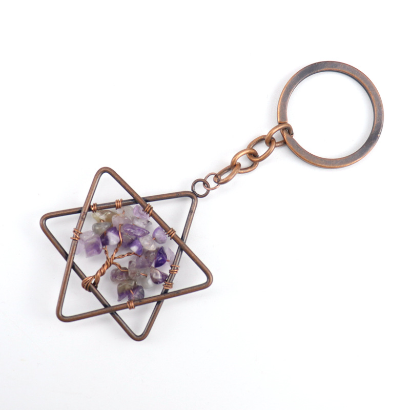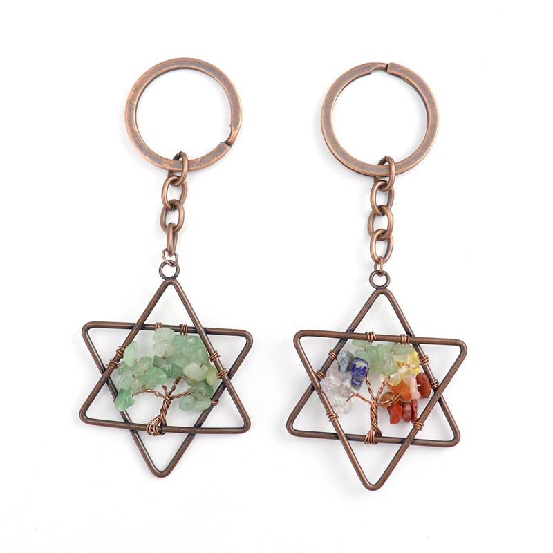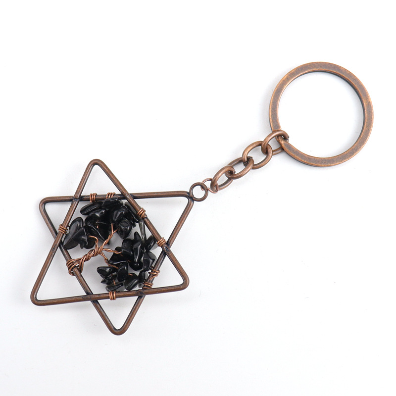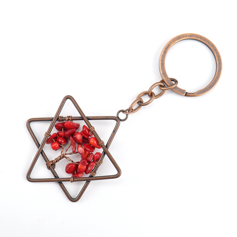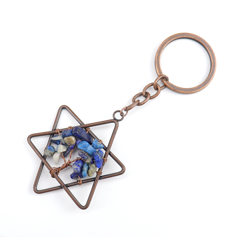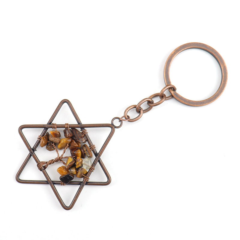Brass Key Chain, Hexagram, plated, different materials for choice, more colors for choice, 50mm, Sold By PC
