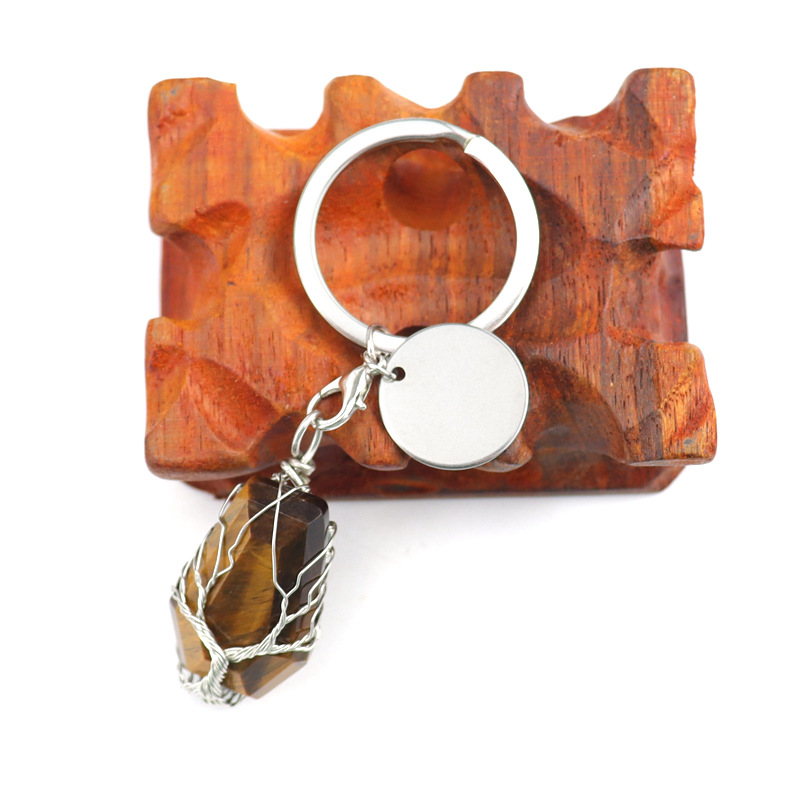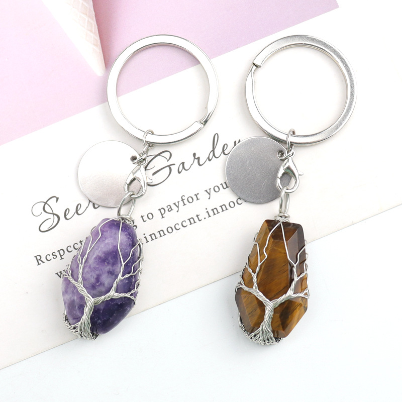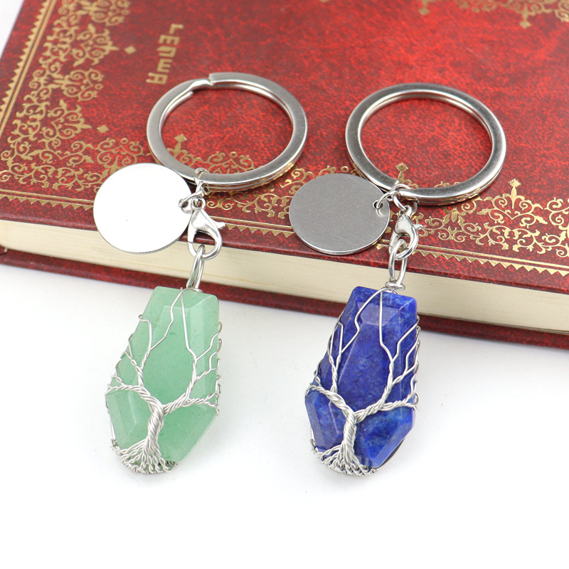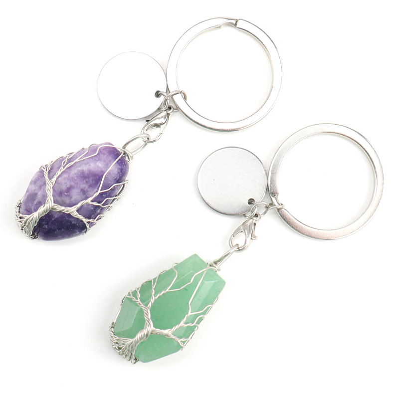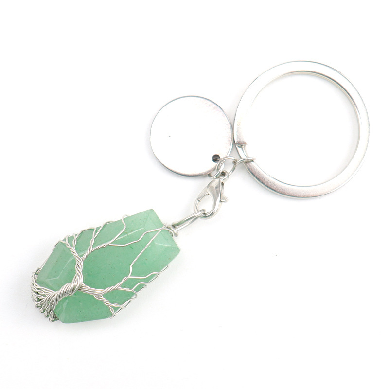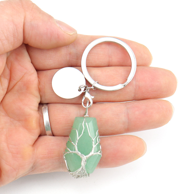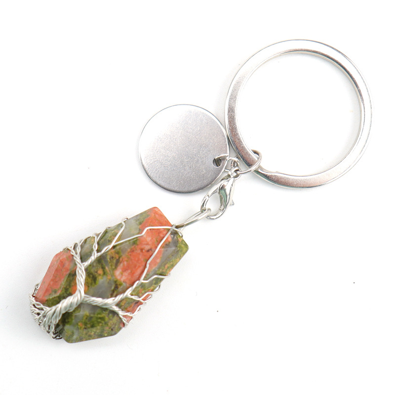 Brass Key Chain, with Natural Stone, silver color plated, different materials for choice, more colors for choice, 20x32mm, Sold By PC