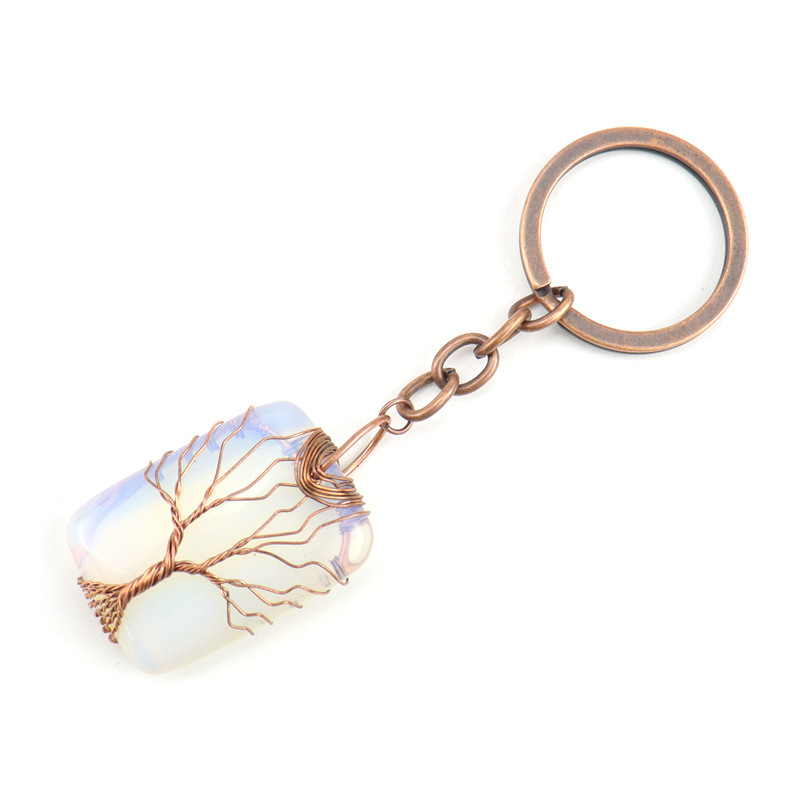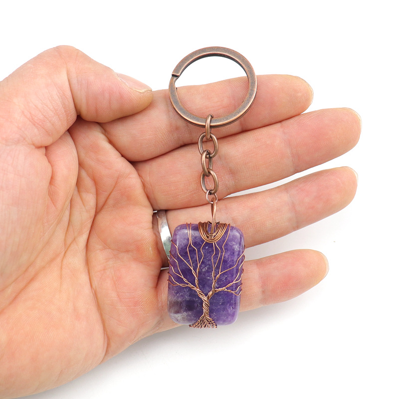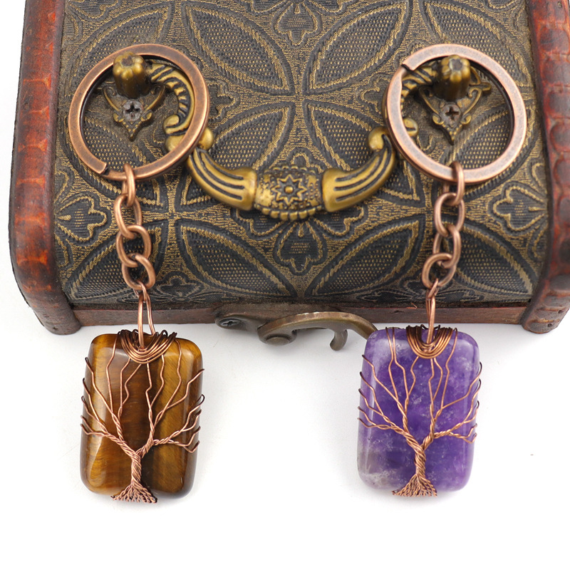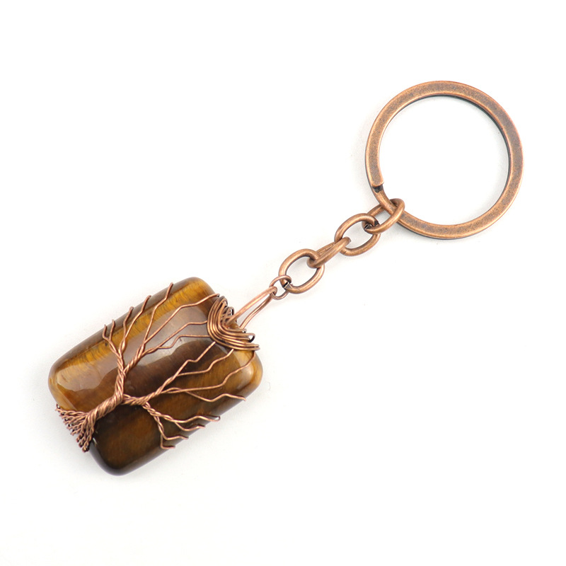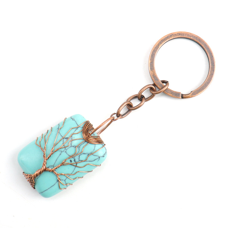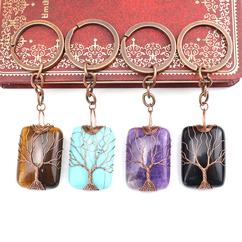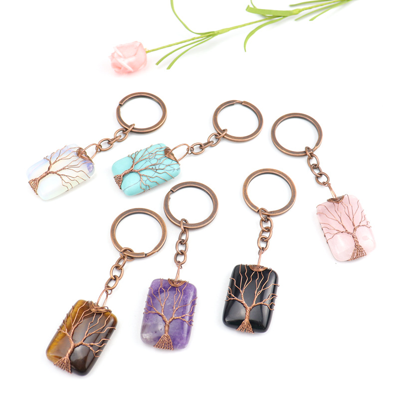 Brass Key Chain, with Natural Stone, Rectangle, plated, different materials for choice, more colors for choice, 30x40mm, Sold By PC