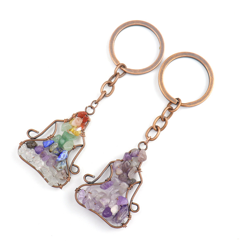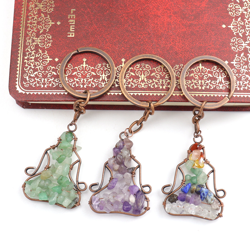 Brass Key Chain, with Natural Stone, plated, different materials for choice, more colors for choice, 35x45mm, Sold By PC