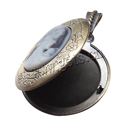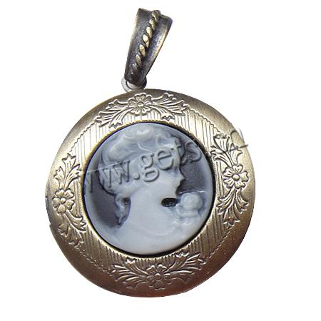 Brass Locket Pendants, Flat round, more colors for choice, with cambo cabochon, cadmium free, 32x46x8mm, Hole:Approx 7x4MM, Sold by PC