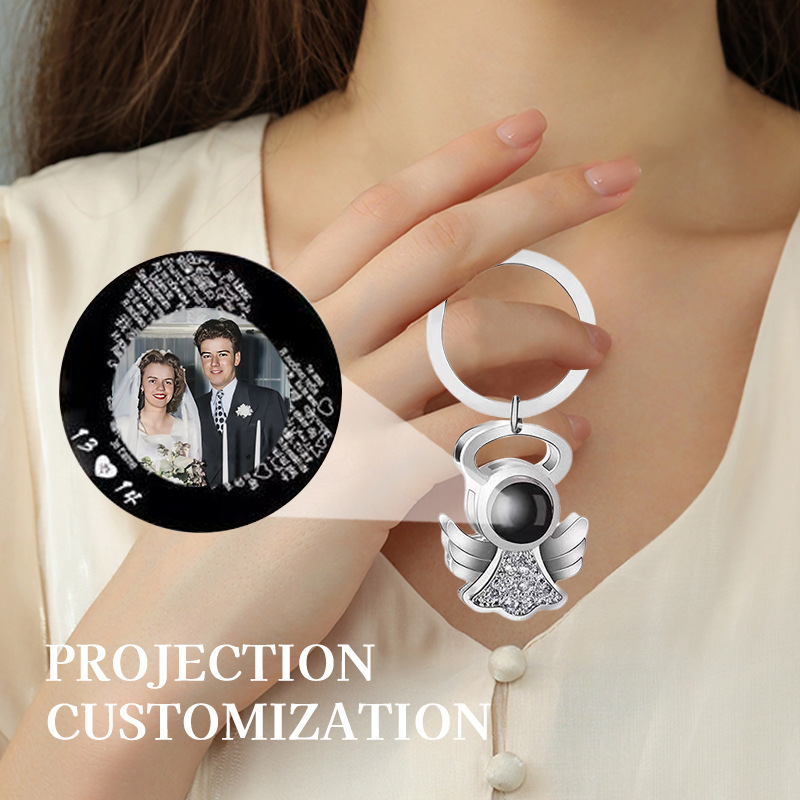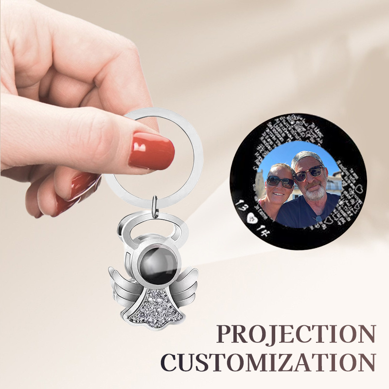 Brass Miniature Projection Key Chain, with Glass, Angel, plated, fashion jewelry & with rhinestone, more colors for choice, 30x45mm, Sold By PC
