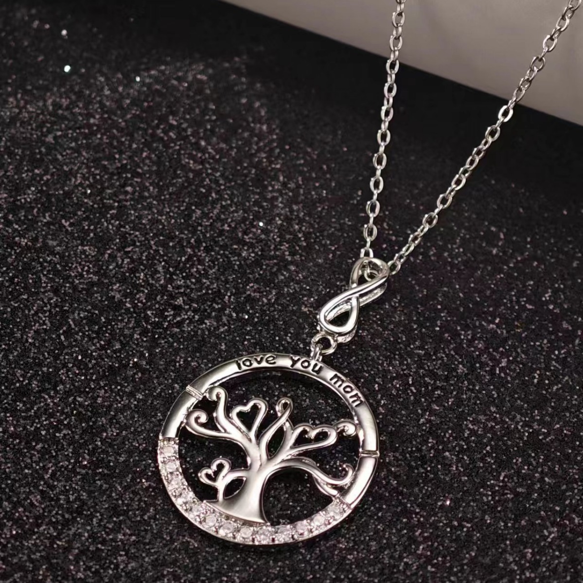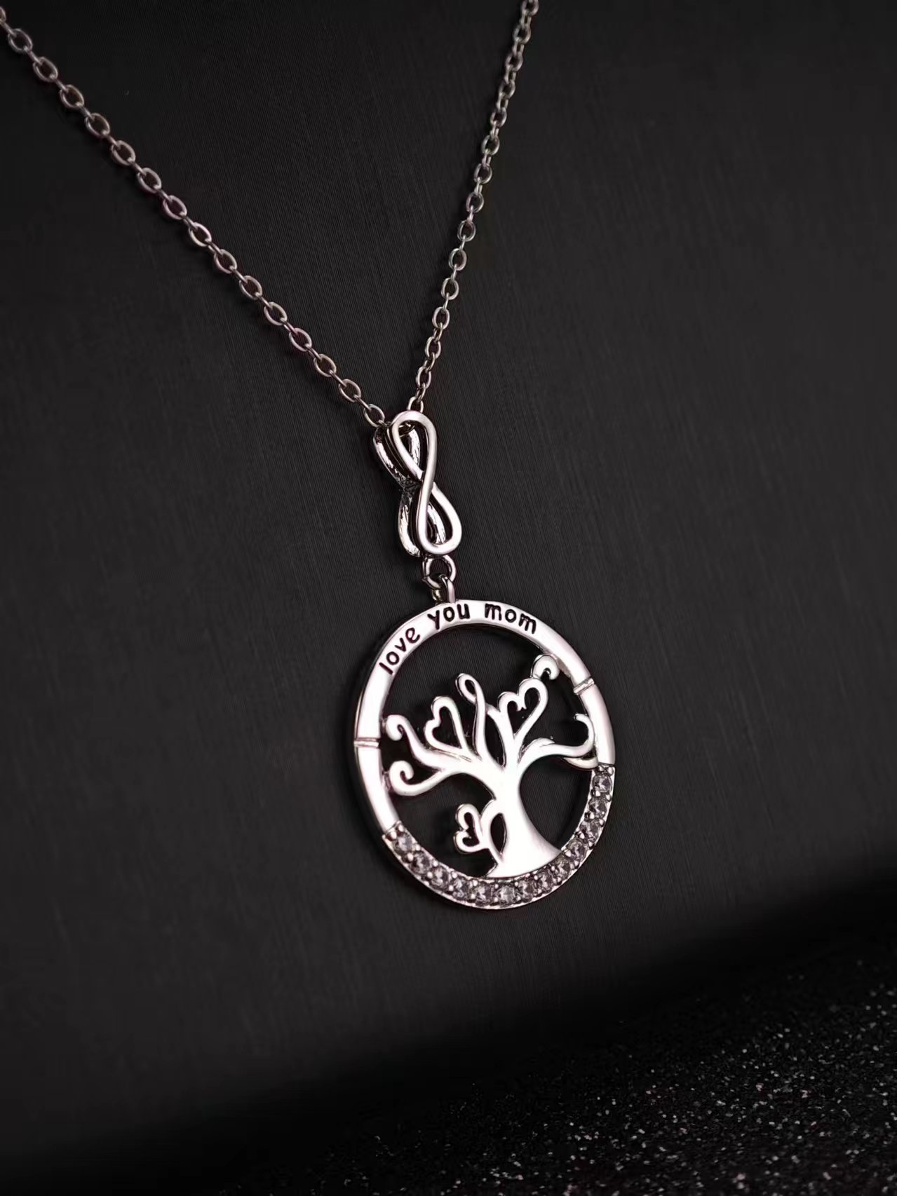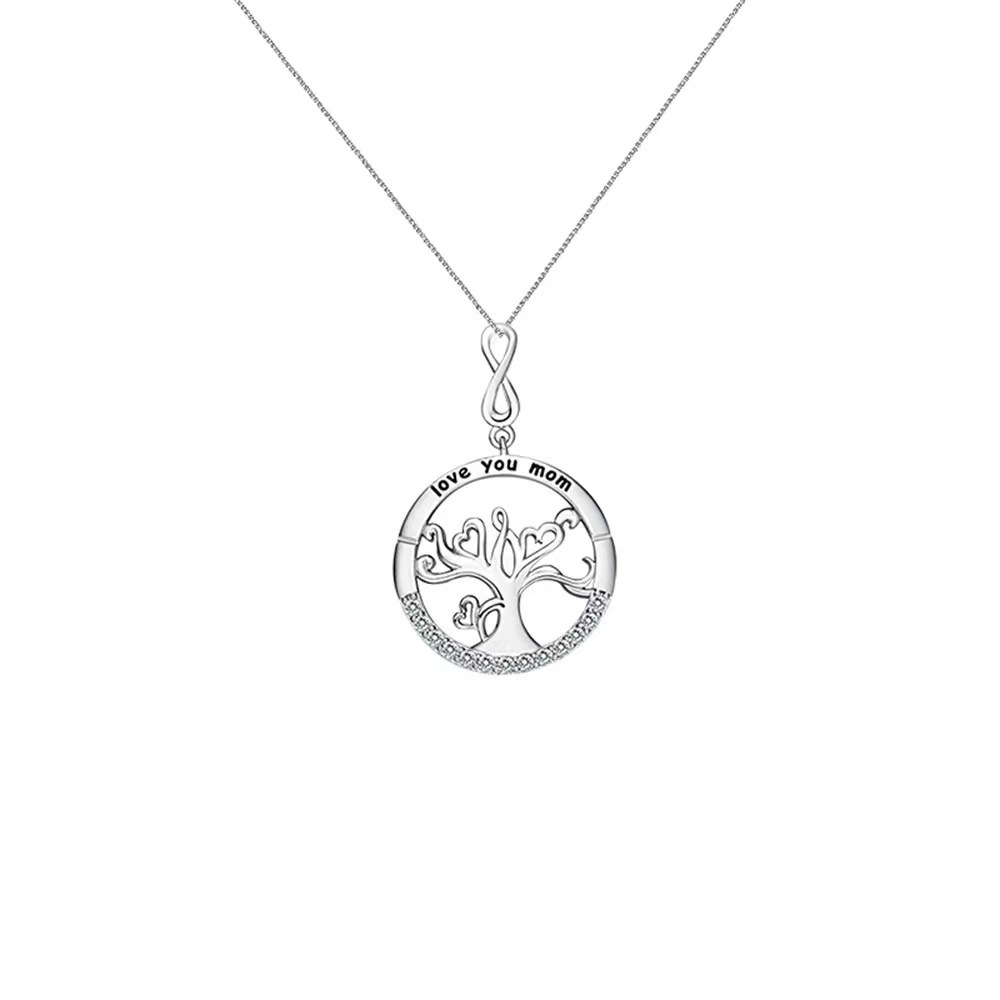 Brass Necklace, Tree, platinum plated, cross chain & for woman & with rhinestone, Length:Approx 16-20 Inch, Sold By PC