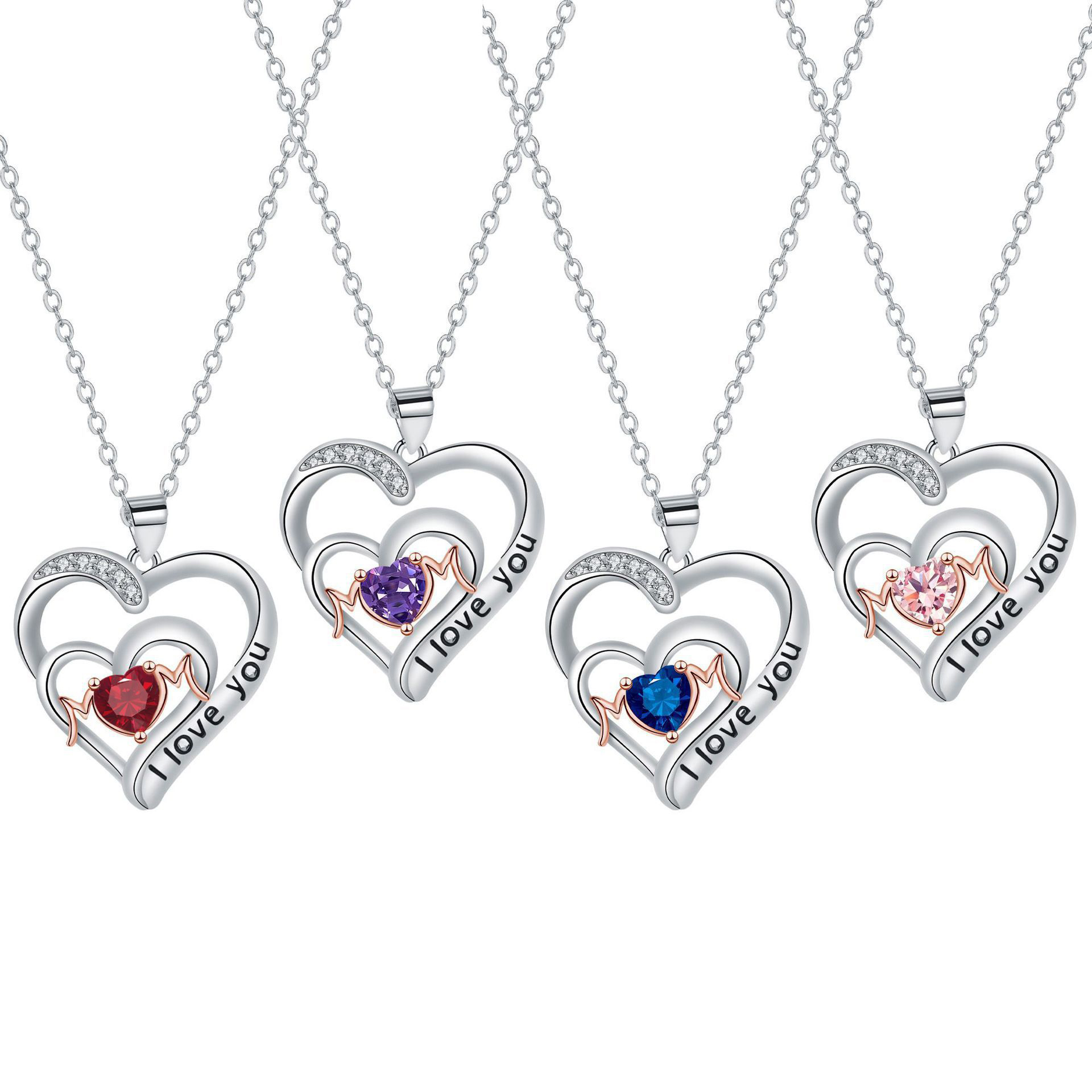 Cubic Zircon Micro Pave Brass Necklace, Heart, real gold plated, oval chain & micro pave cubic zirconia & for woman, lead & cadmium free, 40cm Approx 15.5 Inch
