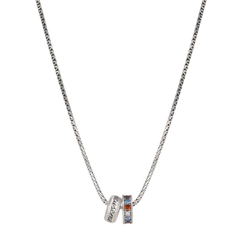 Cubic Zircon Micro Pave Brass Necklace, Spirit, platinum plated, oval chain & micro pave cubic zirconia & for woman Approx 15.5 Inch