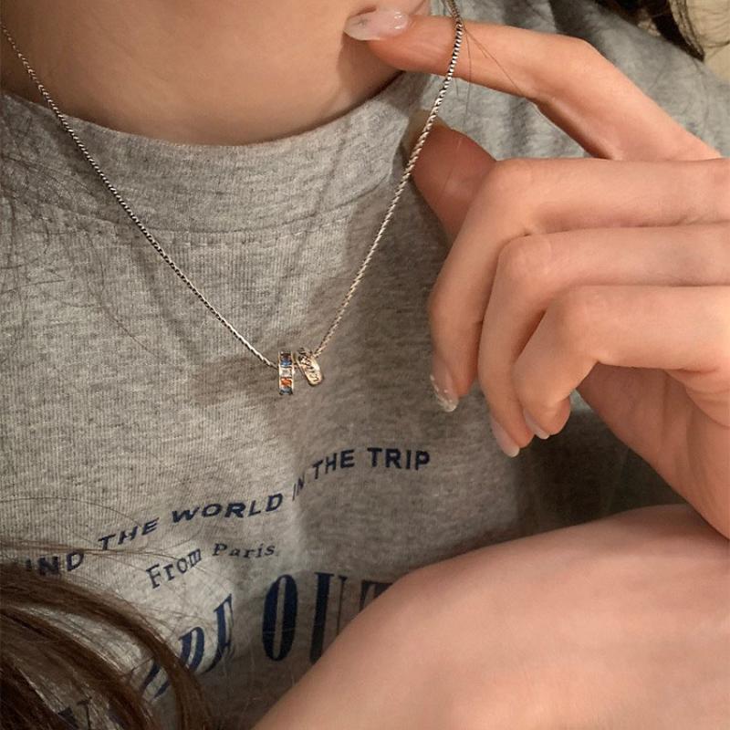 Cubic Zircon Micro Pave Brass Necklace, platinum color plated, letters are from A to Z & box chain & micro pave cubic zirconia & for woman, 28mm Approx 19.6 Inch