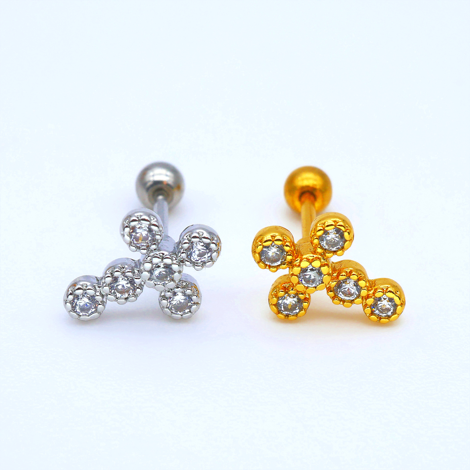 Brass Piercing Barbell, with 316L Stainless Steel, plated, micro pave cubic zirconia & for woman