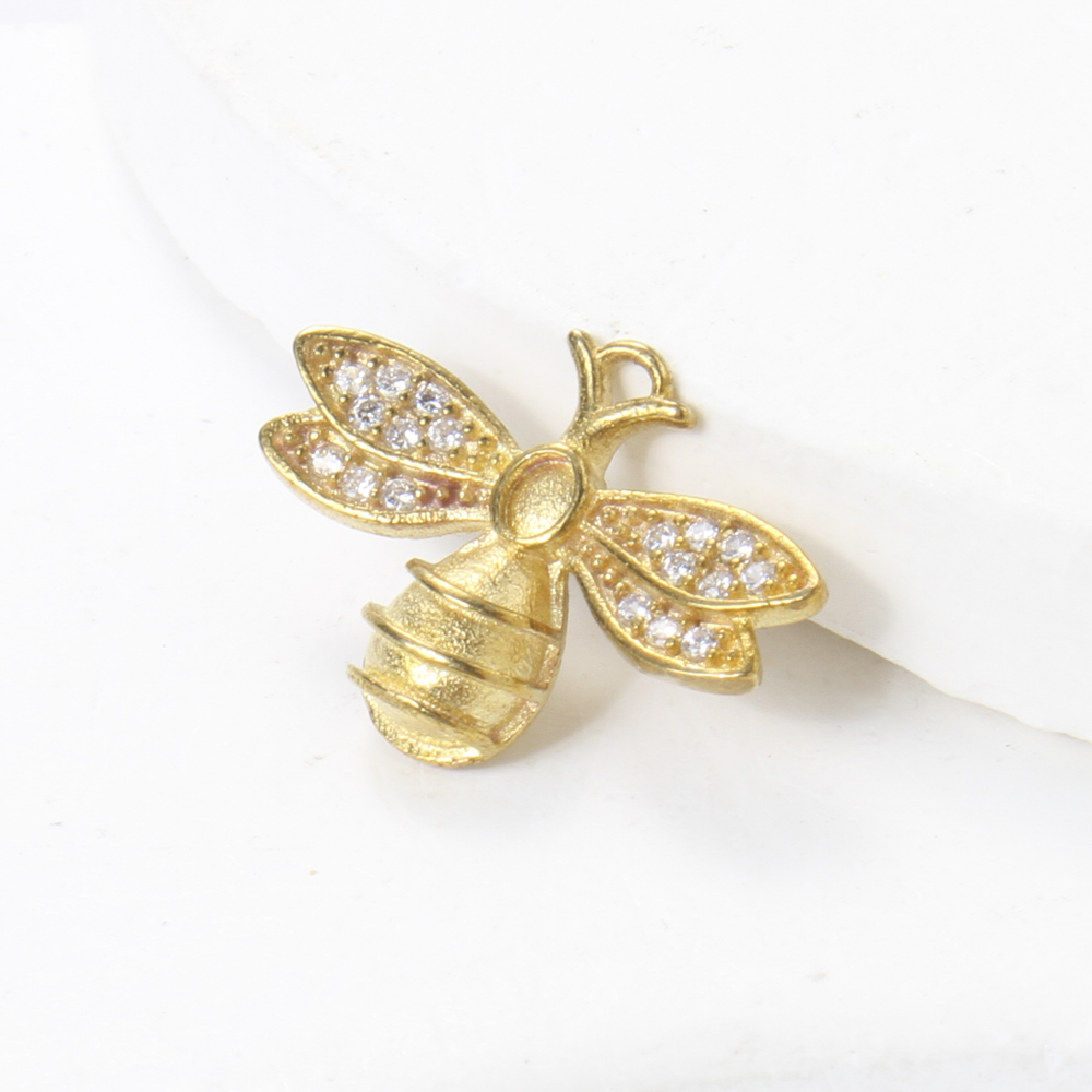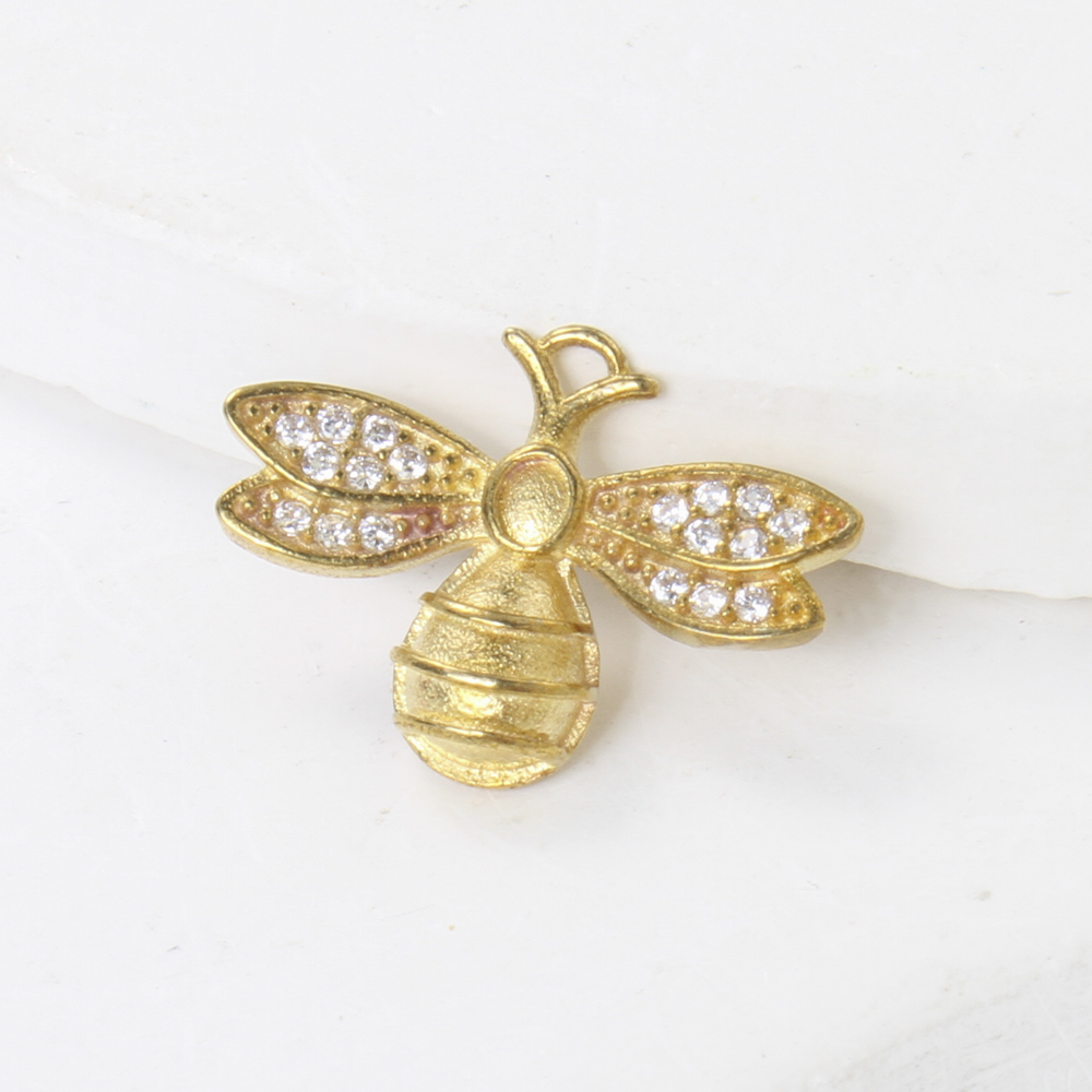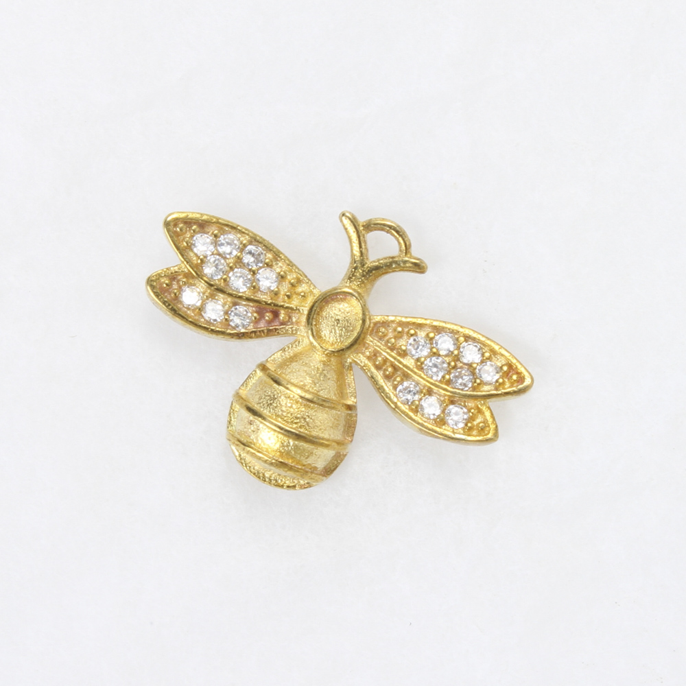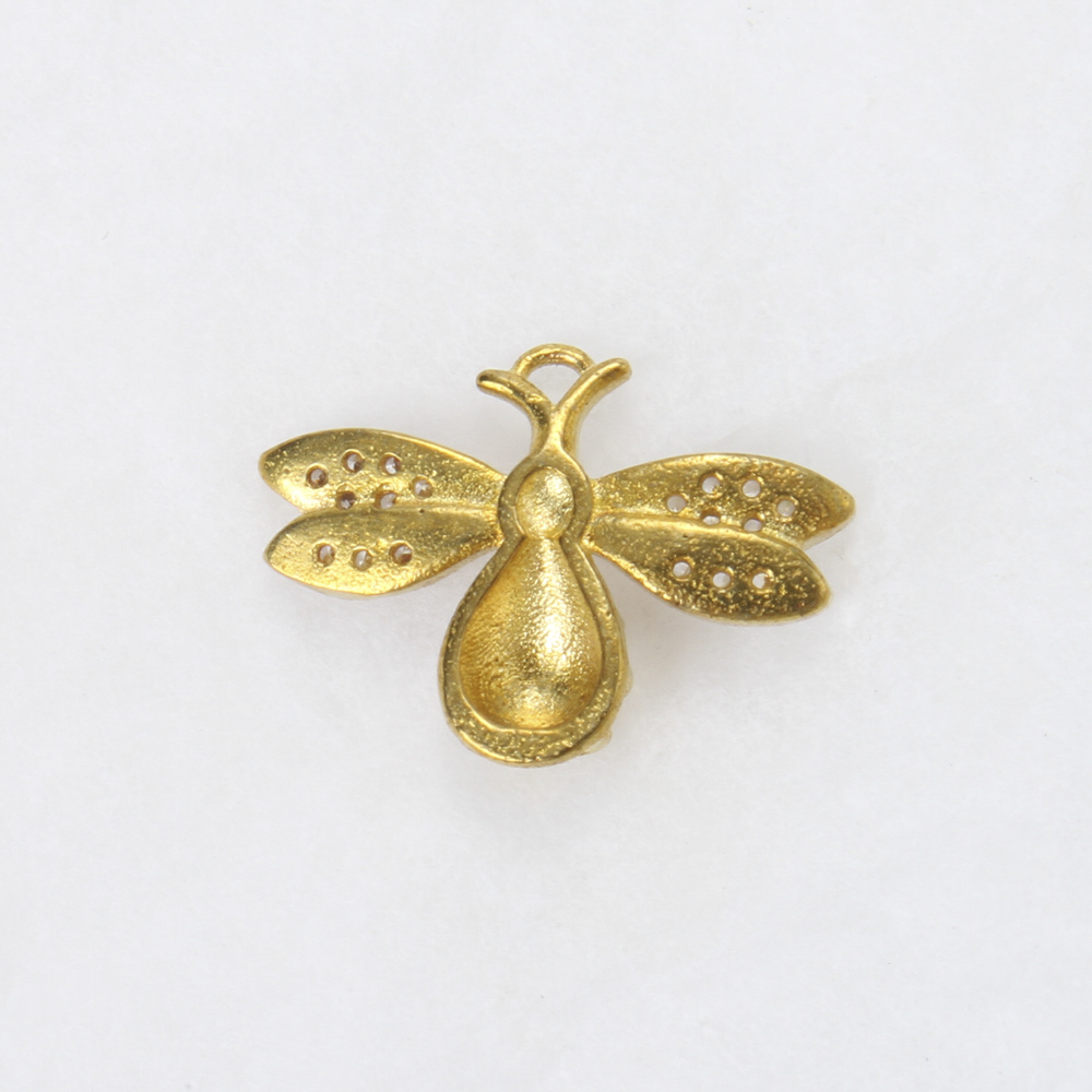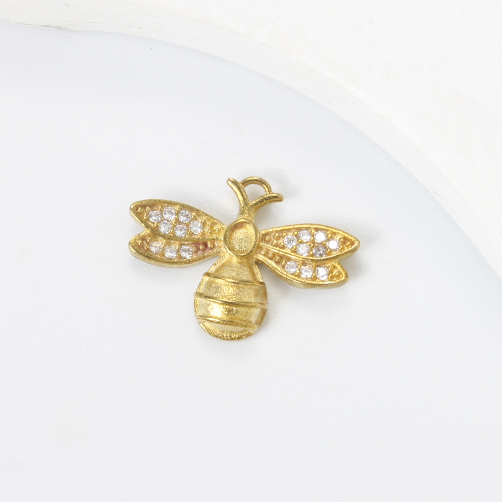 Brass Pendant Cabochon Setting, Bee, plated, DIY & with rhinestone, golden, 12.4x17.3x3.2mm, Sold By PC