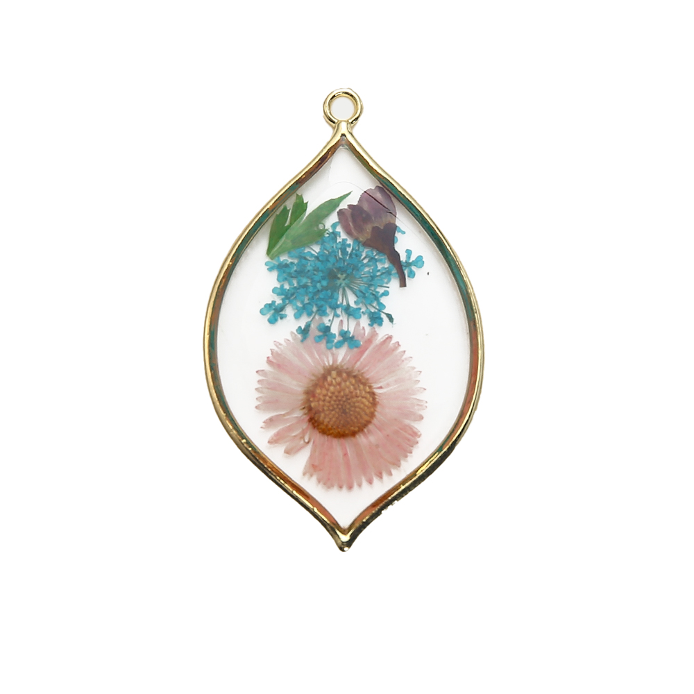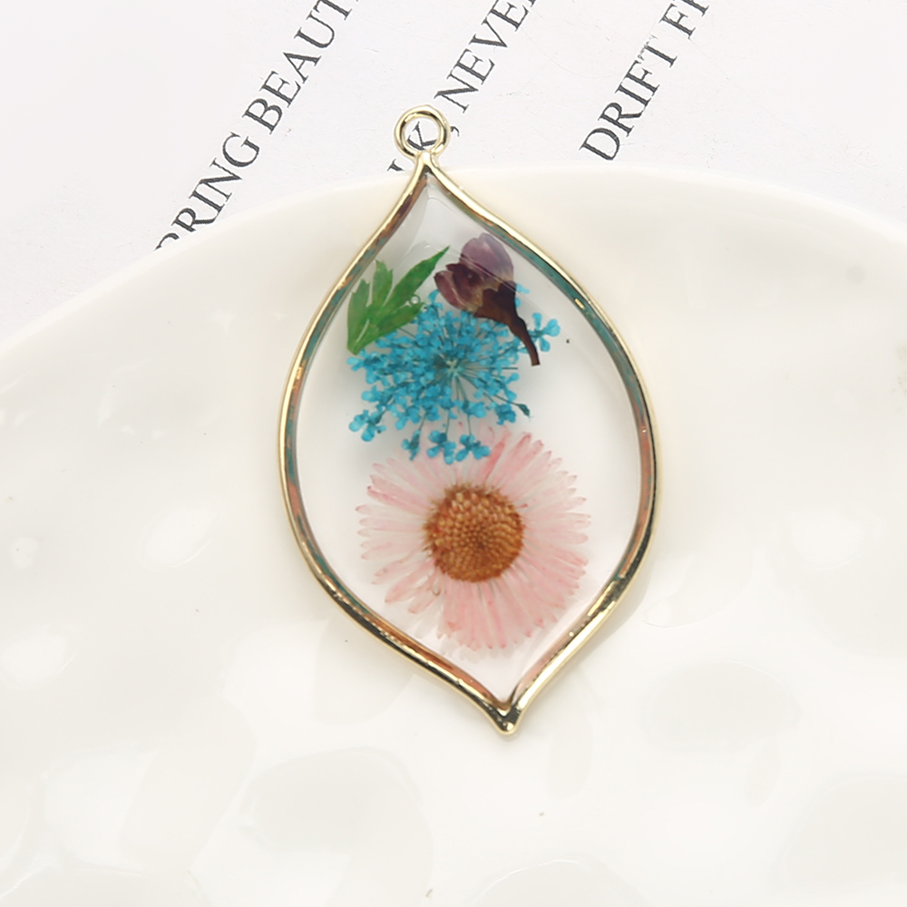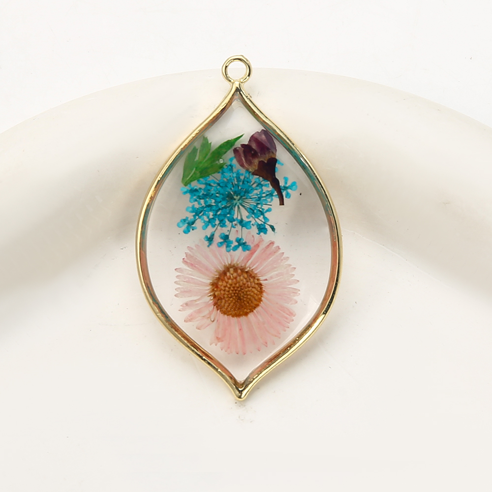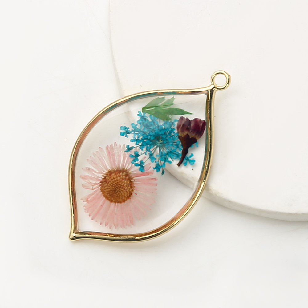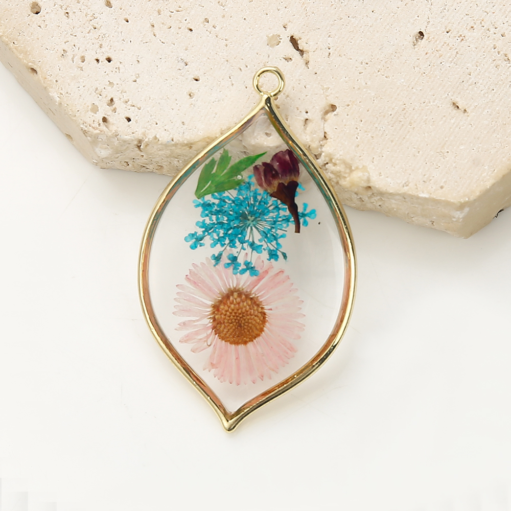 Brass Pendant, with Dried Flower & Resin, plated, DIY, mixed colors, 30.85x3.62x51.31mm, Sold By PC