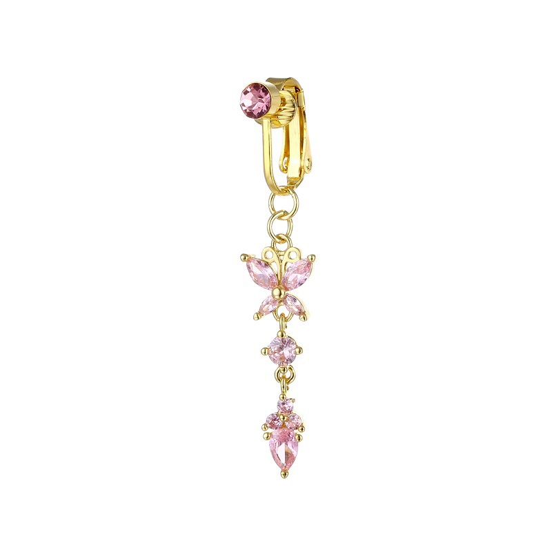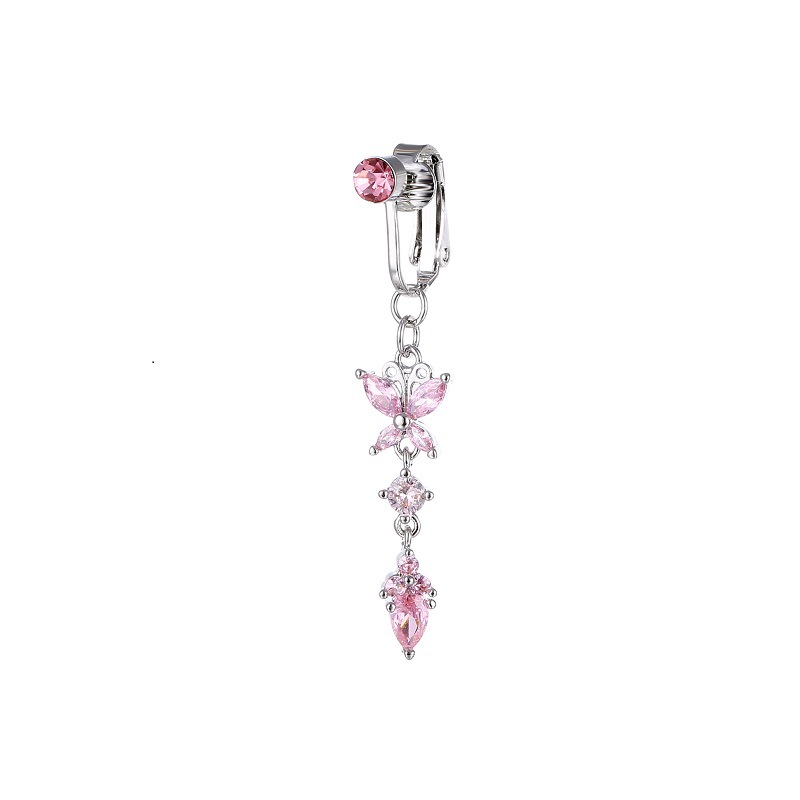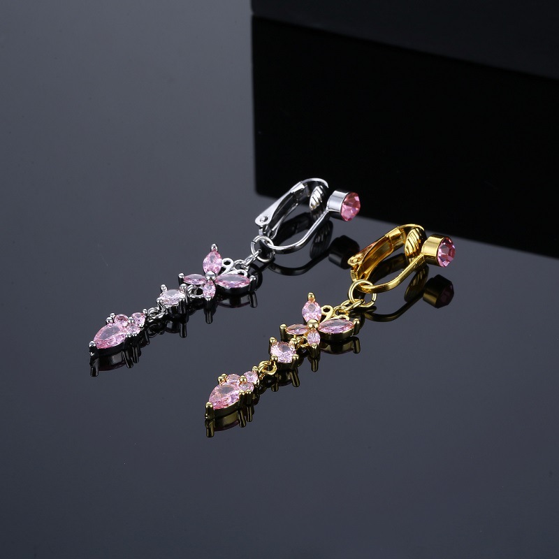 Brass Piercing Barbell, Butterfly, plated, Unisex & micro pave cubic zirconia, more colors for choice, belly ring length 40-50mm, Sold By PC