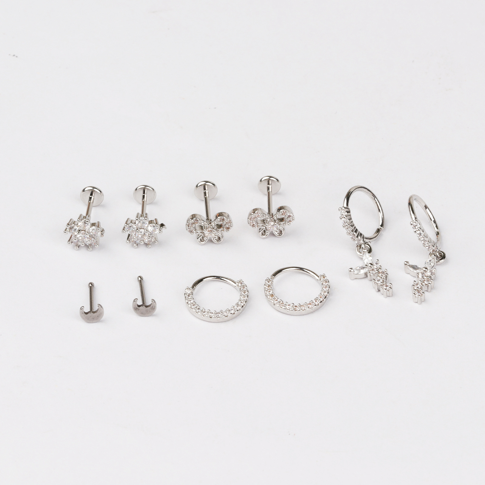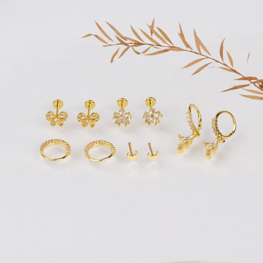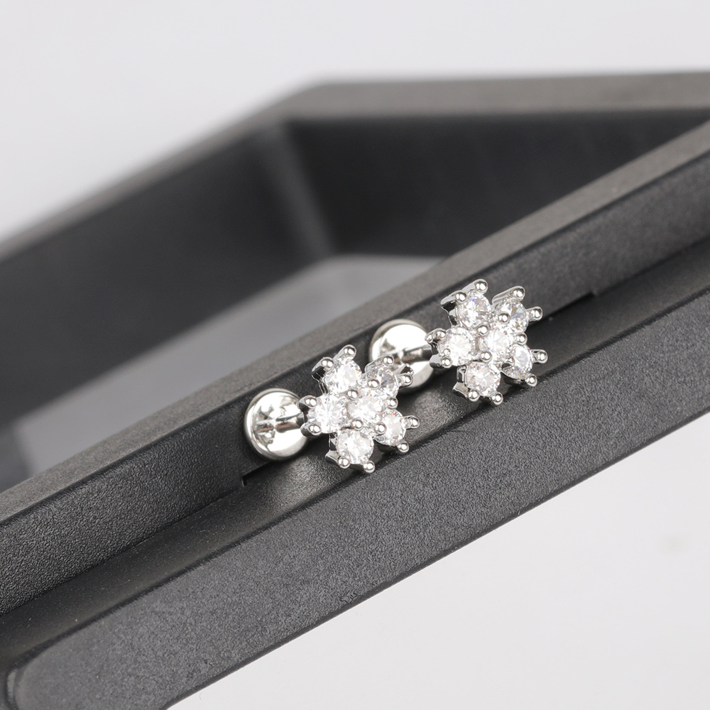 Brass Piercing Earring, plated, fashion jewelry & micro pave cubic zirconia, more colors for choice, Sold By PC