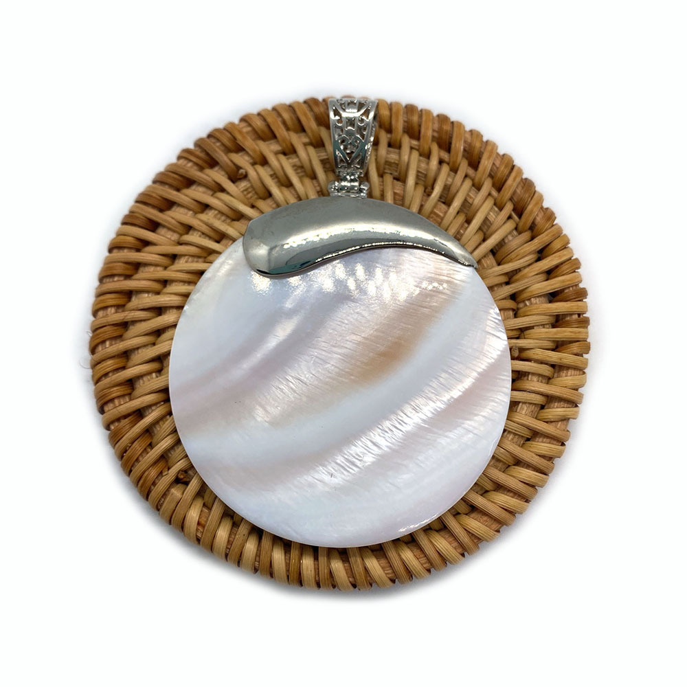 Brass Shell Pendants, with White Shell & Abalone Shell, Flat Oval, platinum color plated, natural, 83mm  Approx