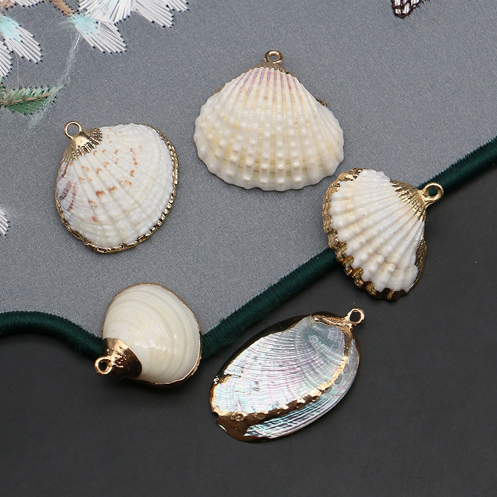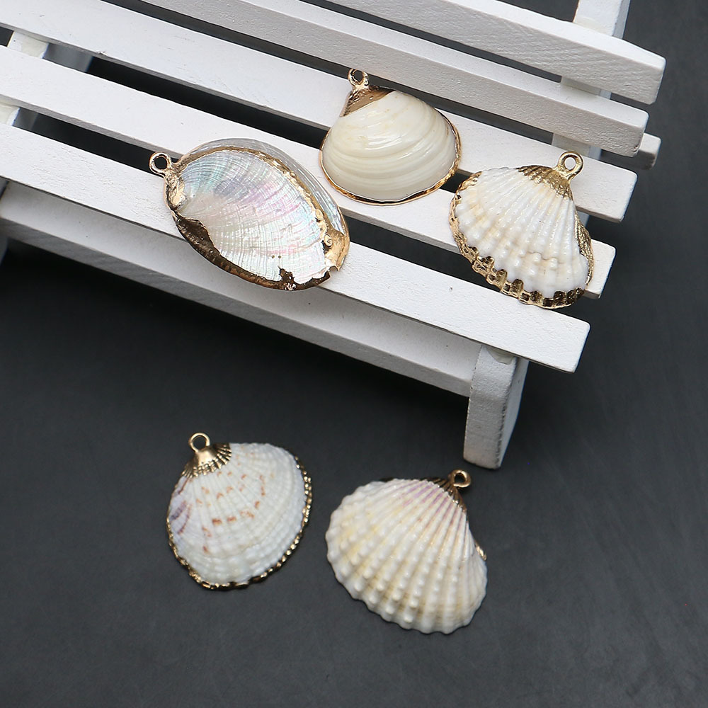 Brass Shell Pendants, with Brass, gold color plated, Unisex 15-55mm