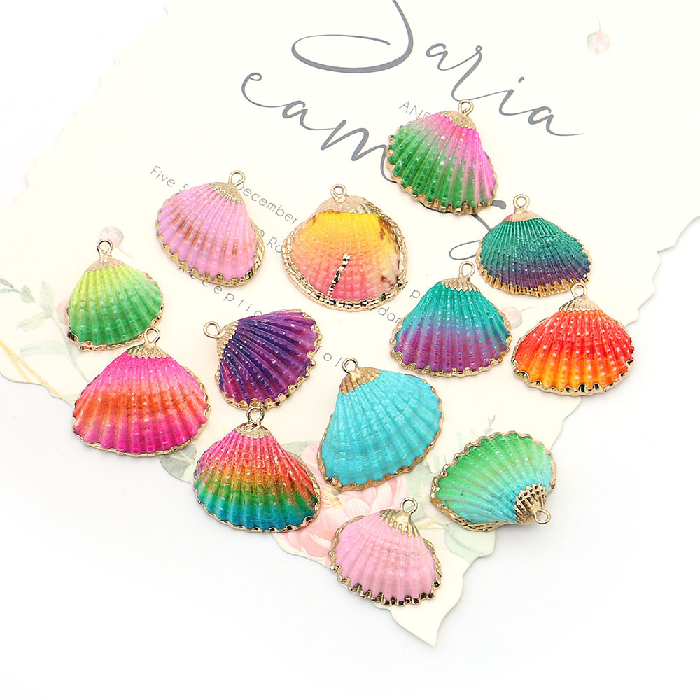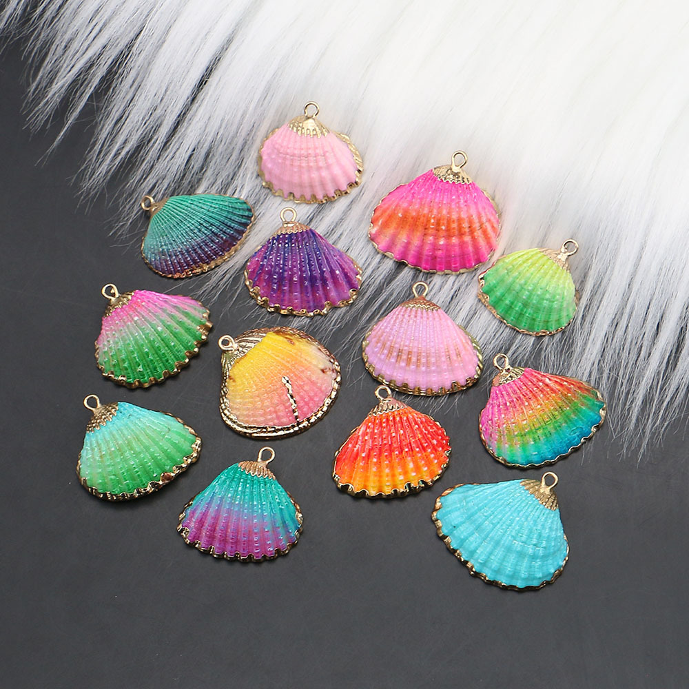 Brass Shell Pendants, with Shell, gold color plated, fashion jewelry & dyed 26-30x25-26x9-10mm Approx 2mm