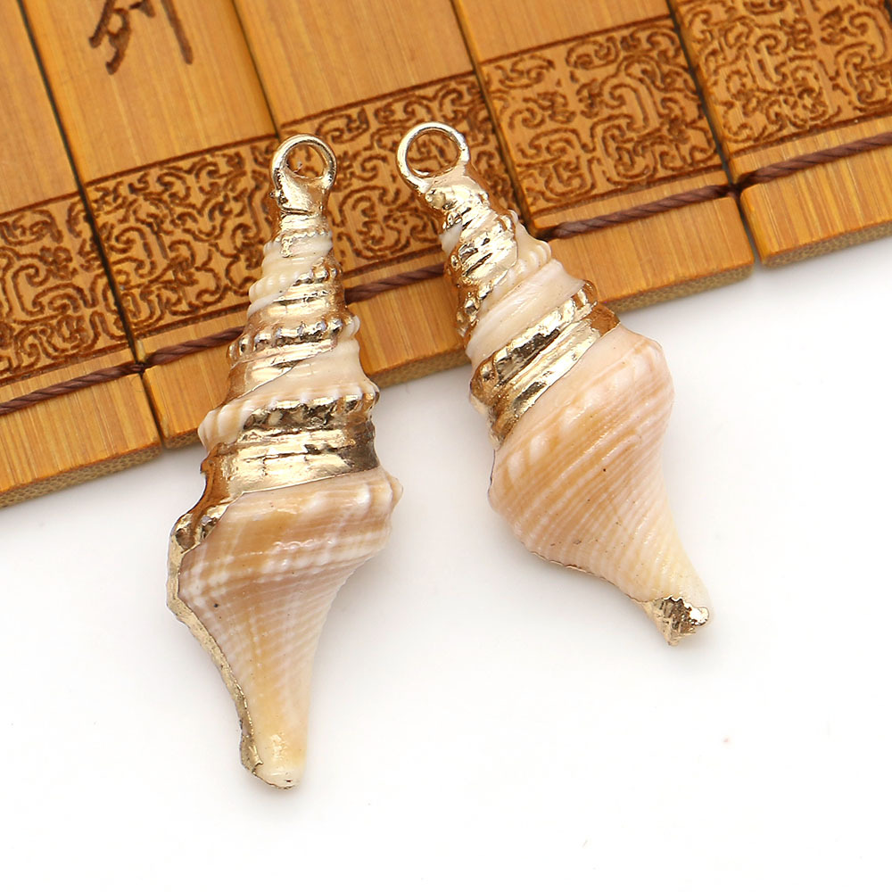 Brass Shell Pendants, with Brass, Conch, plated, DIY, mixed colors, 13x33mm-13x36mm, Sold By PC