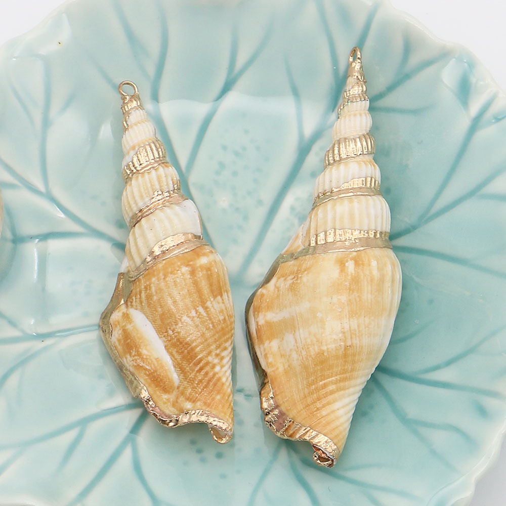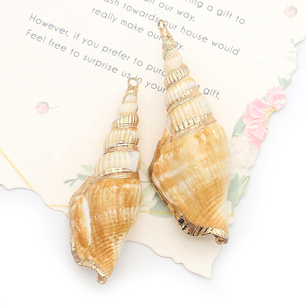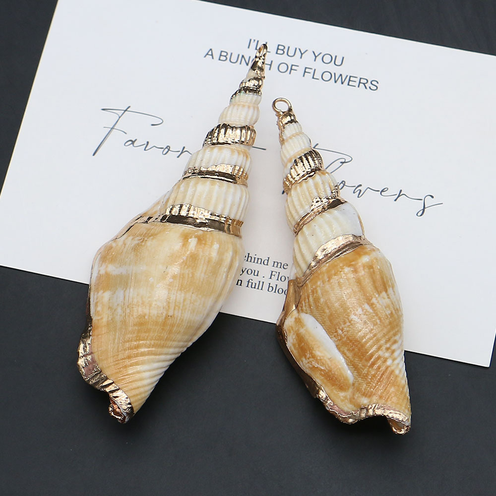 Brass Shell Pendants, with Brass, Conch, plated, DIY, mixed colors, 28x78mm-32x86mm, Sold By PC