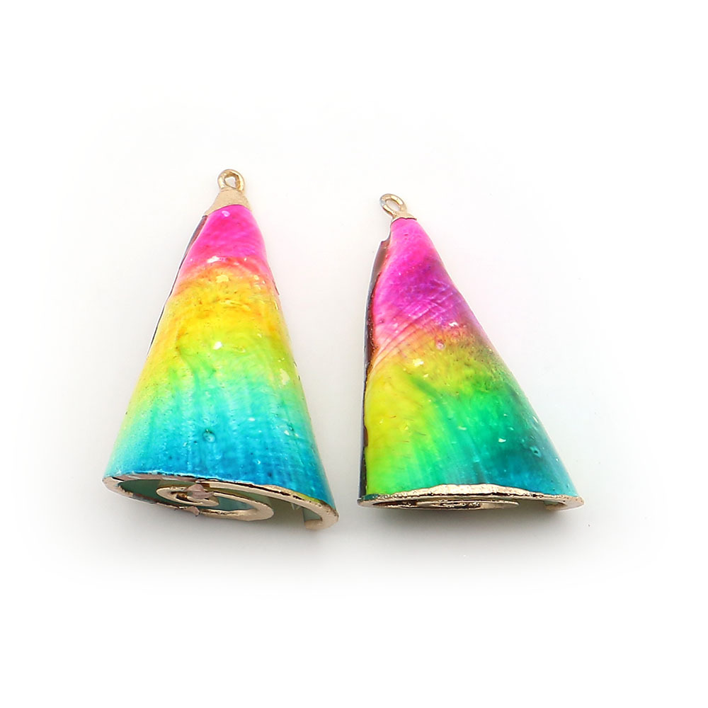 Brass Shell Pendants, with Brass, Triangle, plated, DIY, mixed colors, 25x47mm-27x48mm, Sold By PC