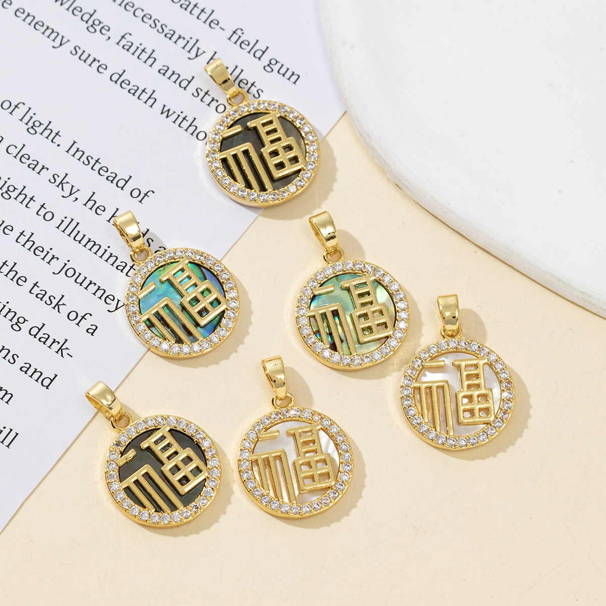 Brass Shell Pendants, with White Shell, Flat Round, 18K gold plated, four leaf clover design & DIY