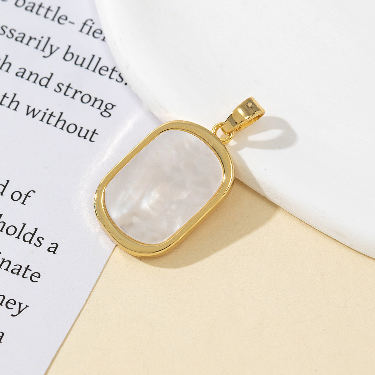 Brass Shell Pendants, with White Shell & Abalone Shell, Flat Oval, platinum color plated, natural, 83mm  Approx