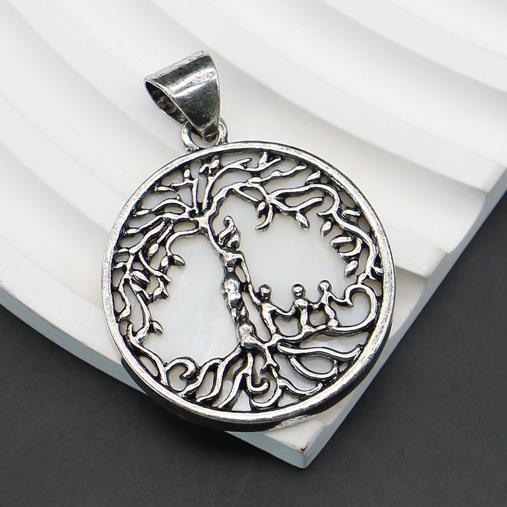 Brass Shell Pendants, White Shell, with Black Shell & Brass, Flat Round, platinum color plated, ying yang Approx