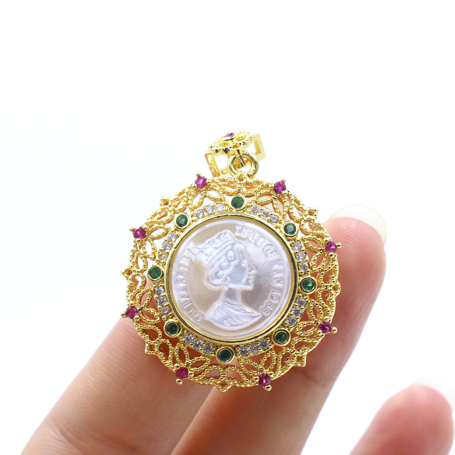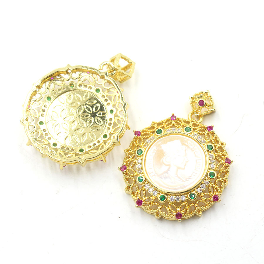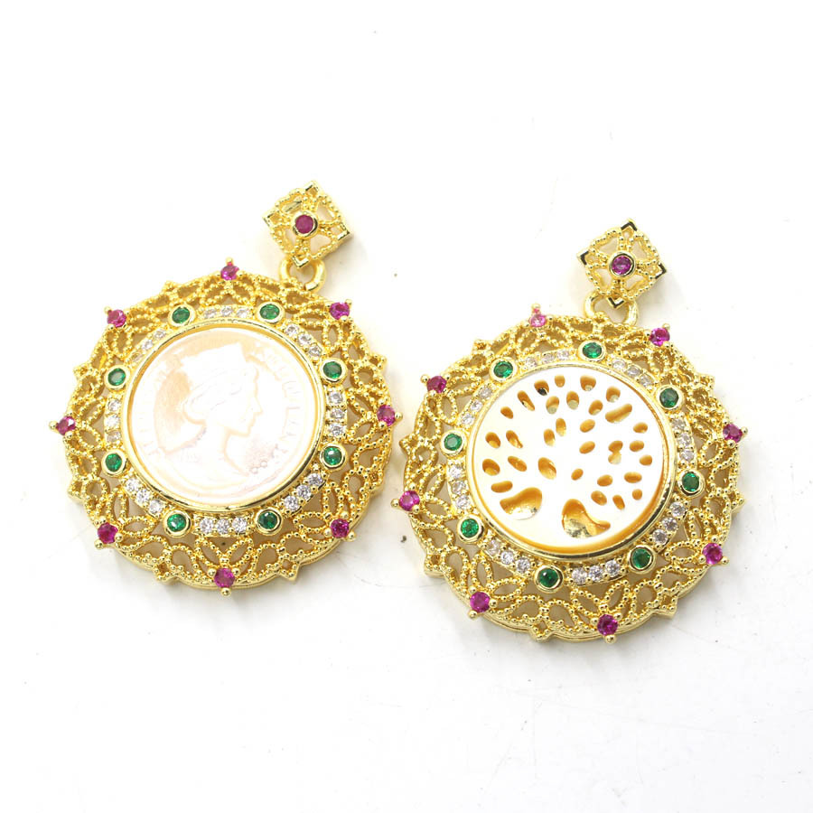 Brass Shell Pendants, with Shell, gold color plated, fashion jewelry & dyed 26-30x25-26x9-10mm Approx 2mm