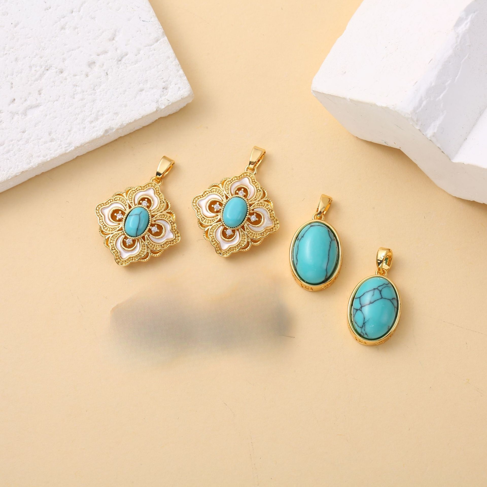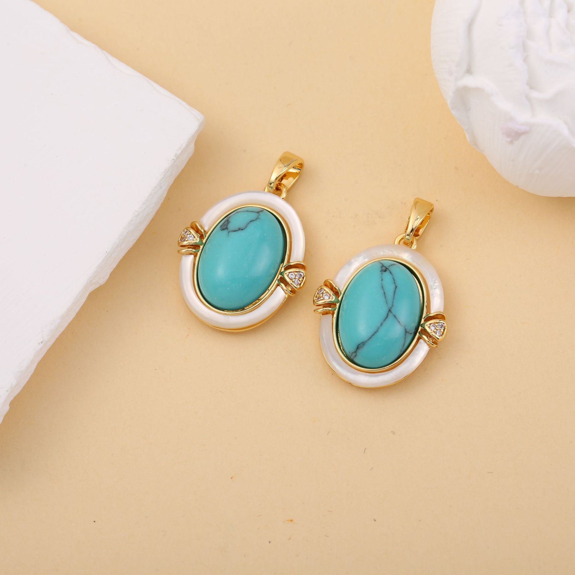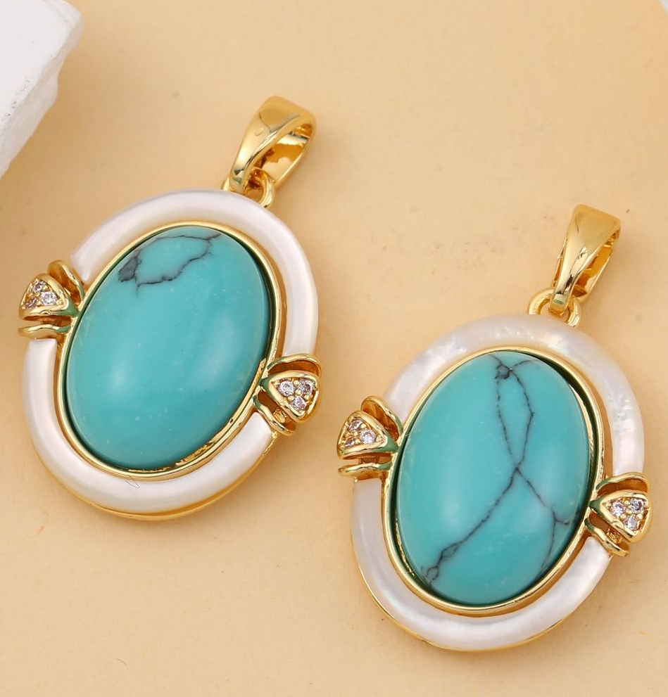 Brass Shell Pendants, with Synthetic Turquoise & White Shell, plated, DIY, more colors for choice, 14.5x20mm, Sold By PC