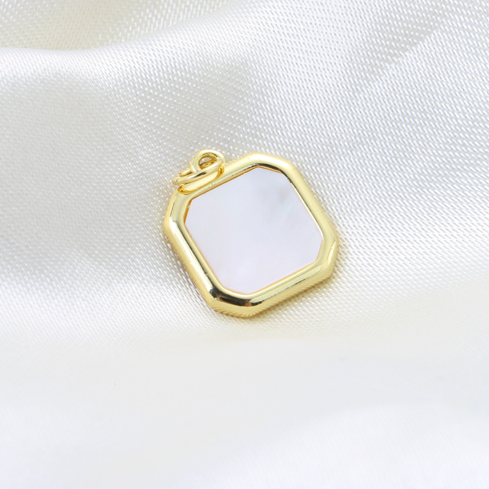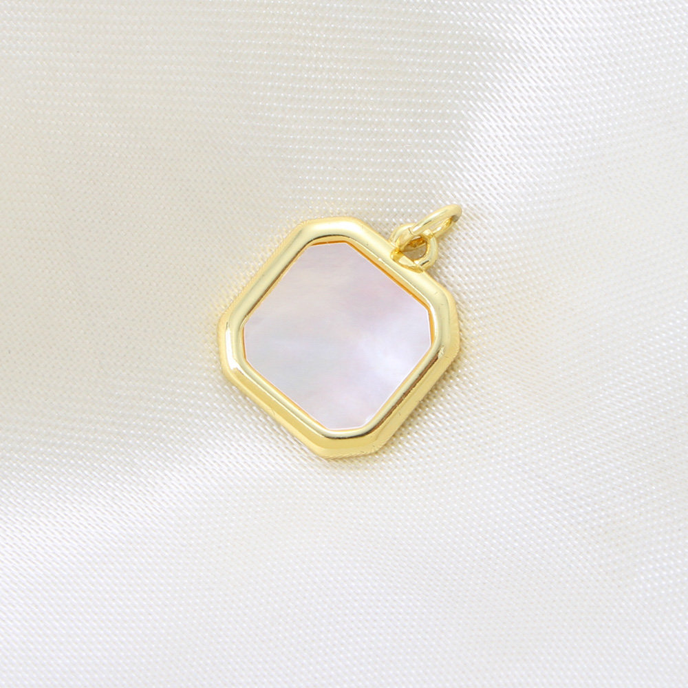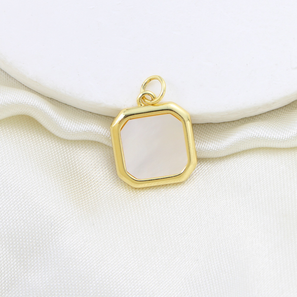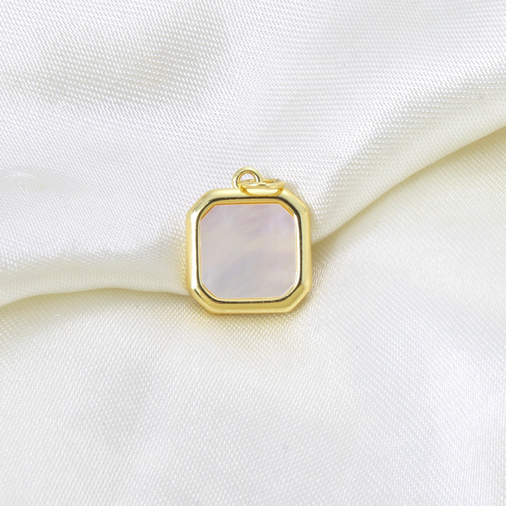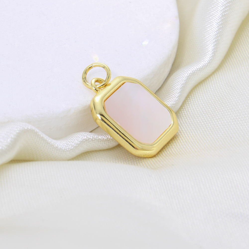 Brass Shell Pendants, with White Shell, Square, plated, DIY, more colors for choice, 16x13.7x2mm, Sold By PC