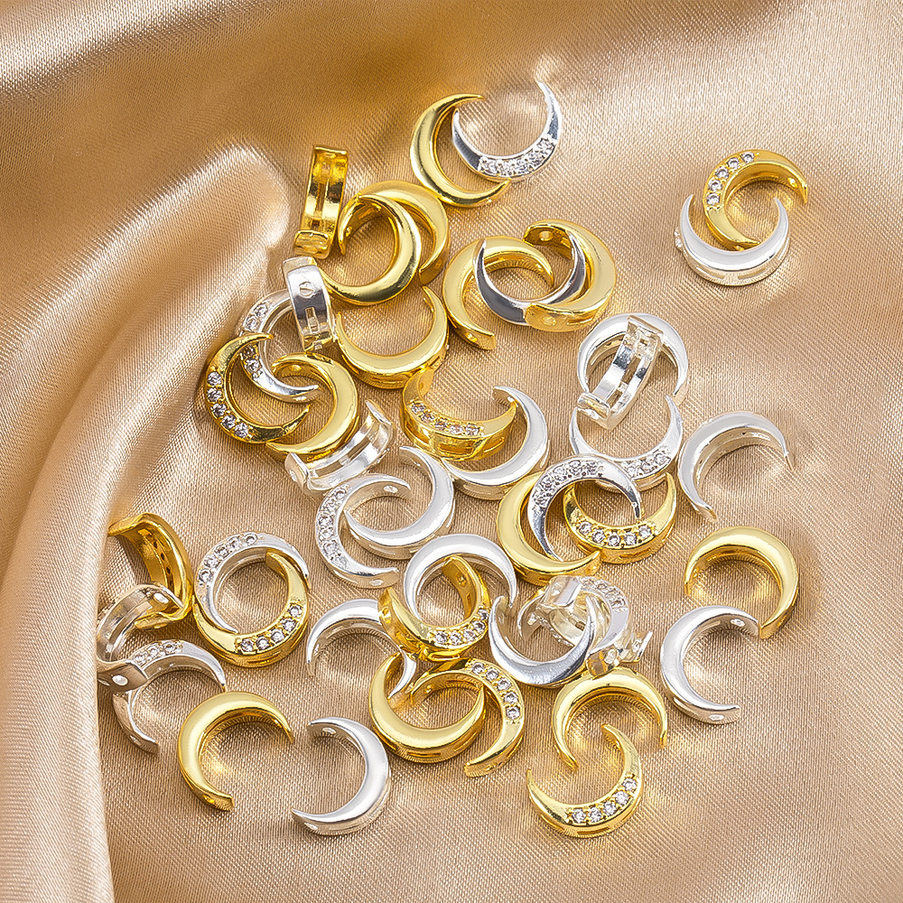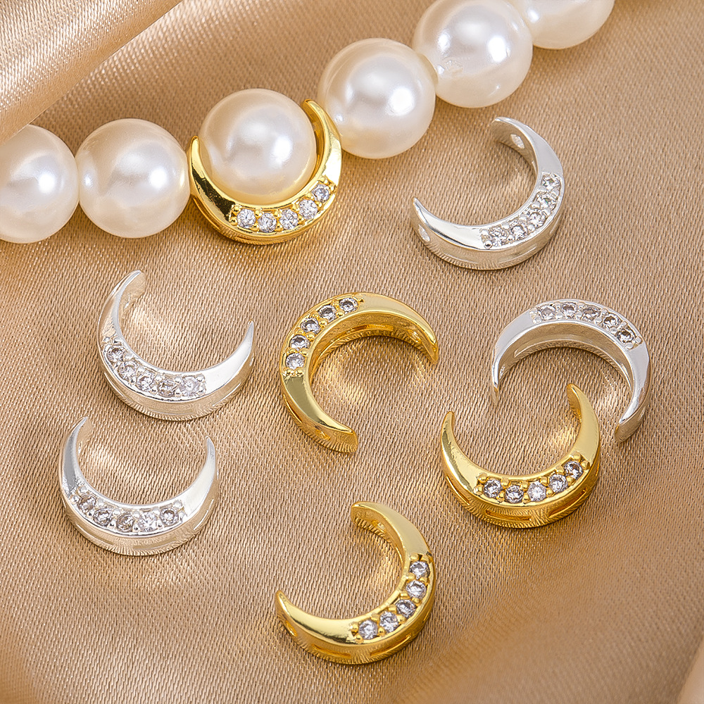 Brass Spacer Beads, Moon, plated, DIY & with rhinestone, more colors for choice, 8.4x10.3mm, Sold By PC