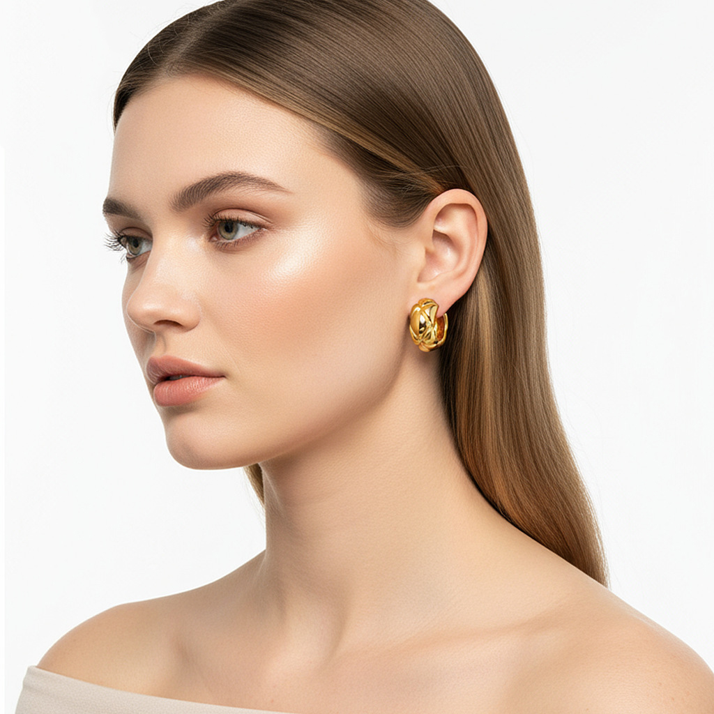 Brass Stud Earring, Dome, plated nickel, lead & cadmium free