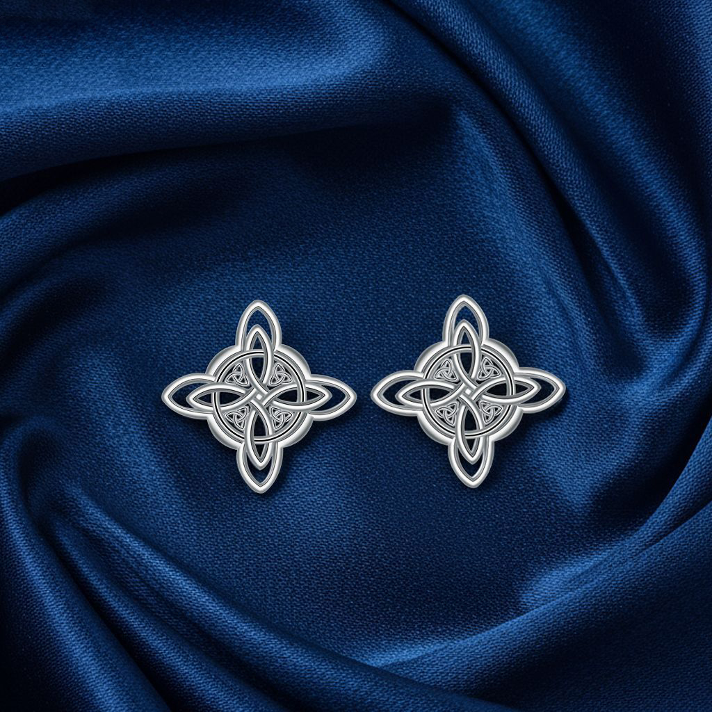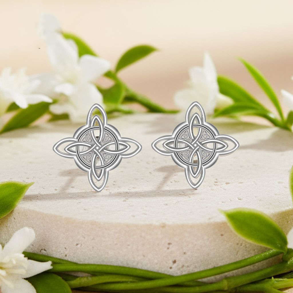 Brass Stud Earring, stainless steel post pin, Antlers, real silver plated, for woman