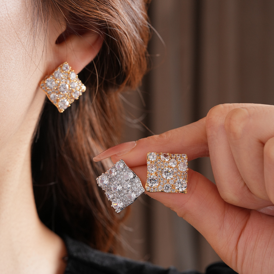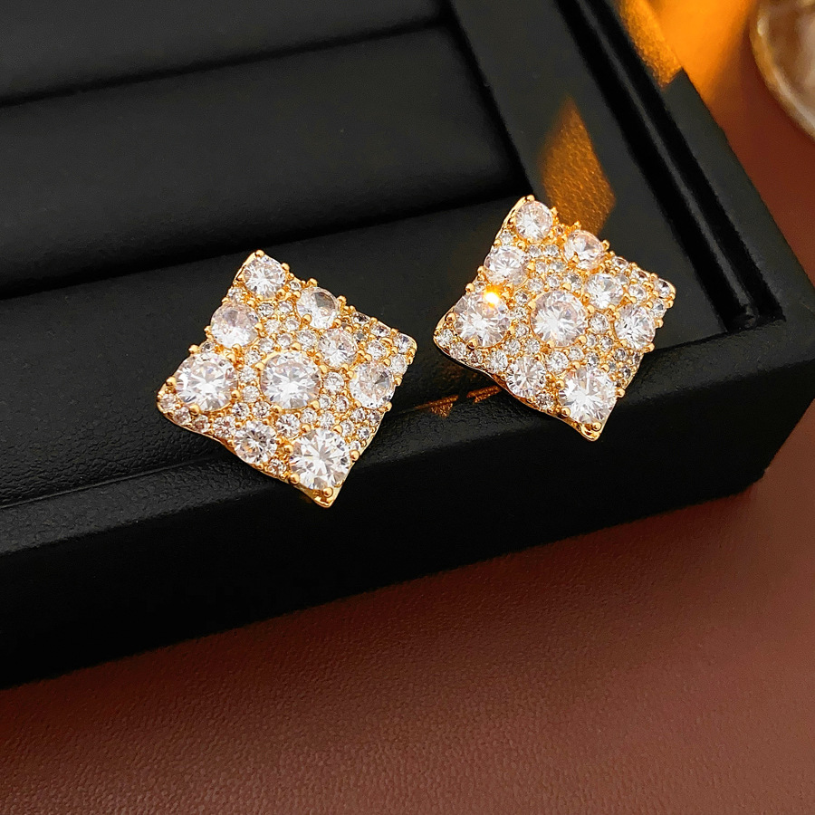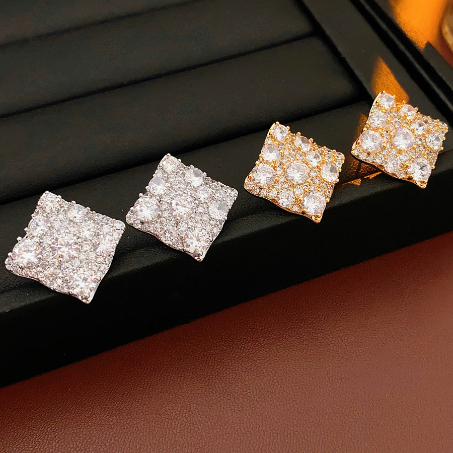 Brass Stud Earring, Square, plated, micro pave cubic zirconia & for woman, more colors for choice, 25x25mm, Sold By Pair
