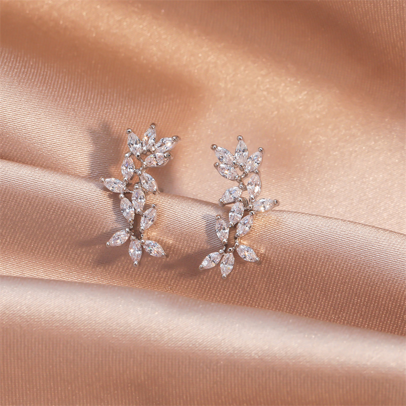 Cubic Zirconia Micro Pave Brass Earring, Flower, real rose gold plated, micro pave cubic zirconia & for woman