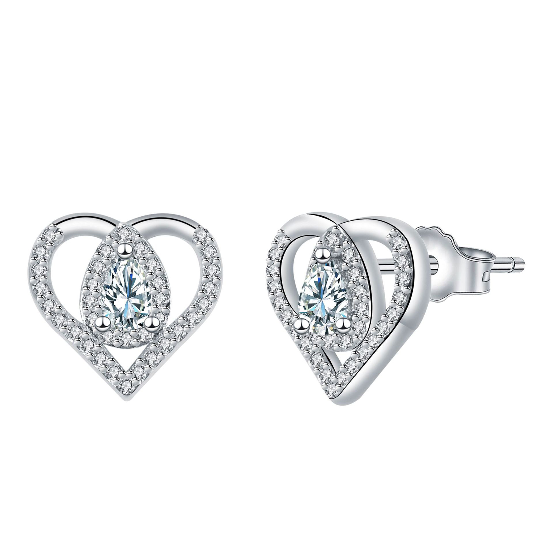 Brass Stud Earring, Heart, plated, Mother Day Jewelry & micro pave cubic zirconia & for woman, more colors for choice, 12.3x11.8mm, Sold By Pair