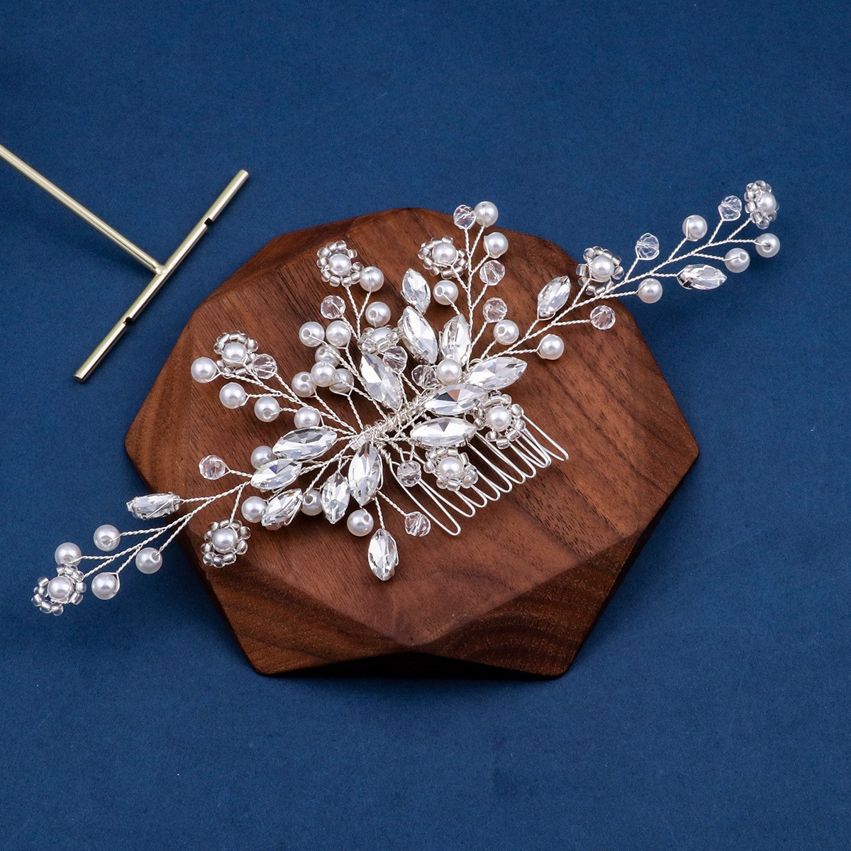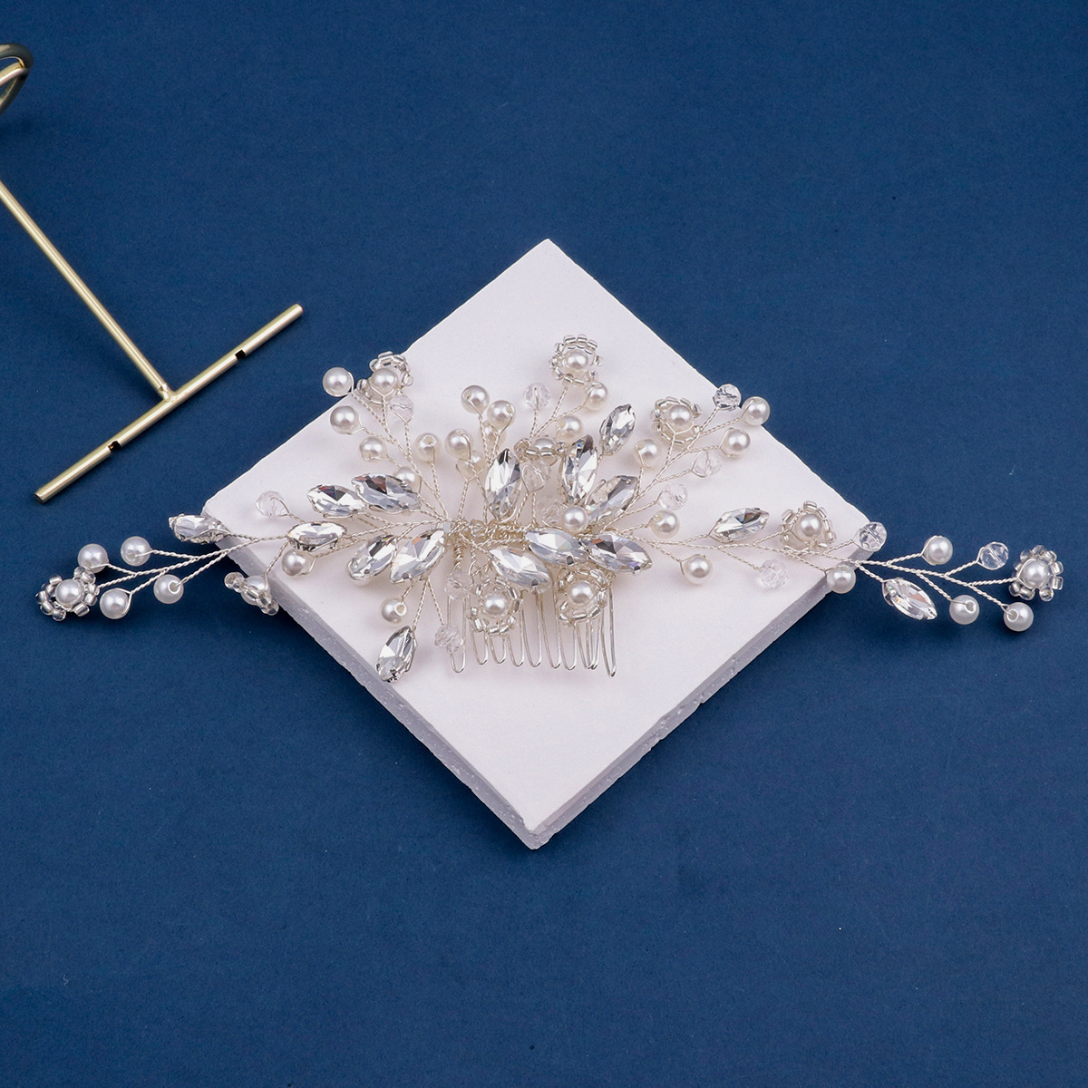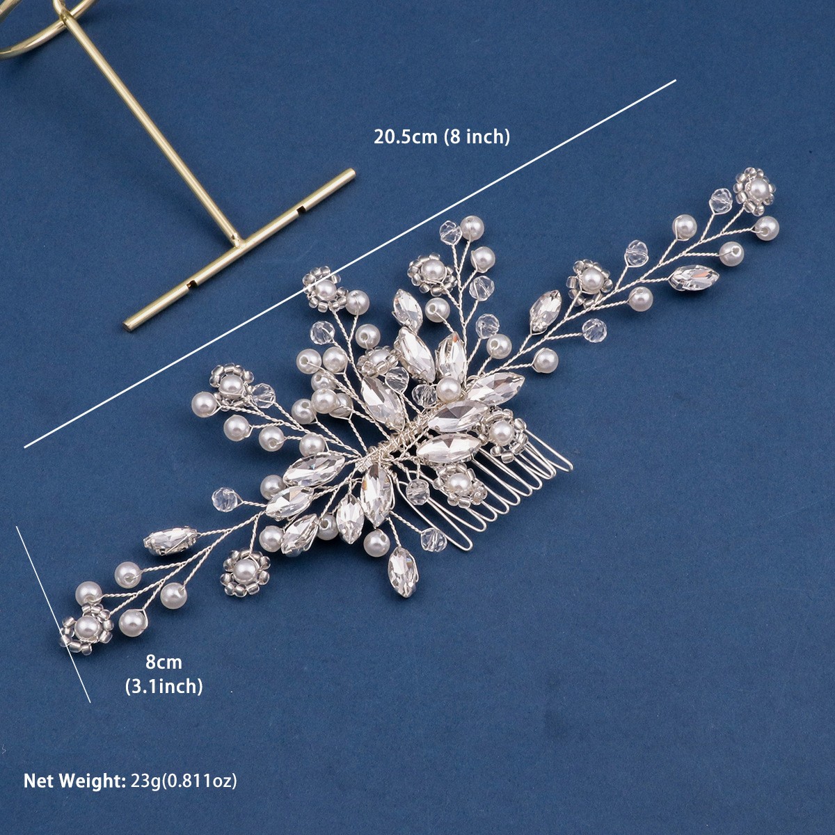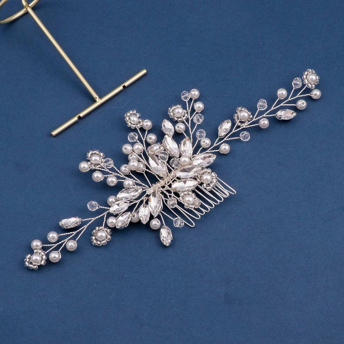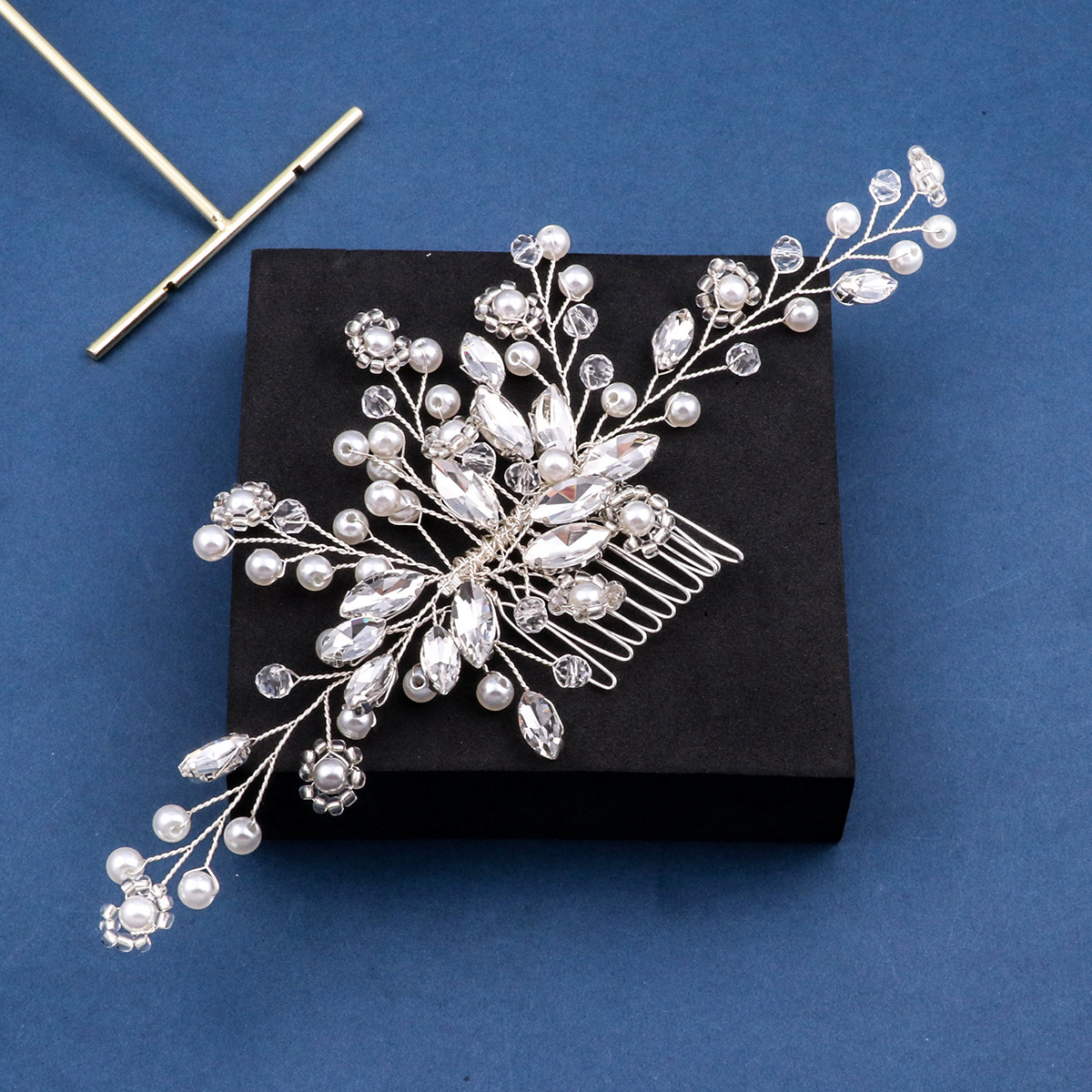 Bridal Decorative Hair Comb, Zinc Alloy, with Seedbead & brass wire & Crystal & Plastic Pearl, handmade, fashion jewelry & for woman, silver color, Sold By PC