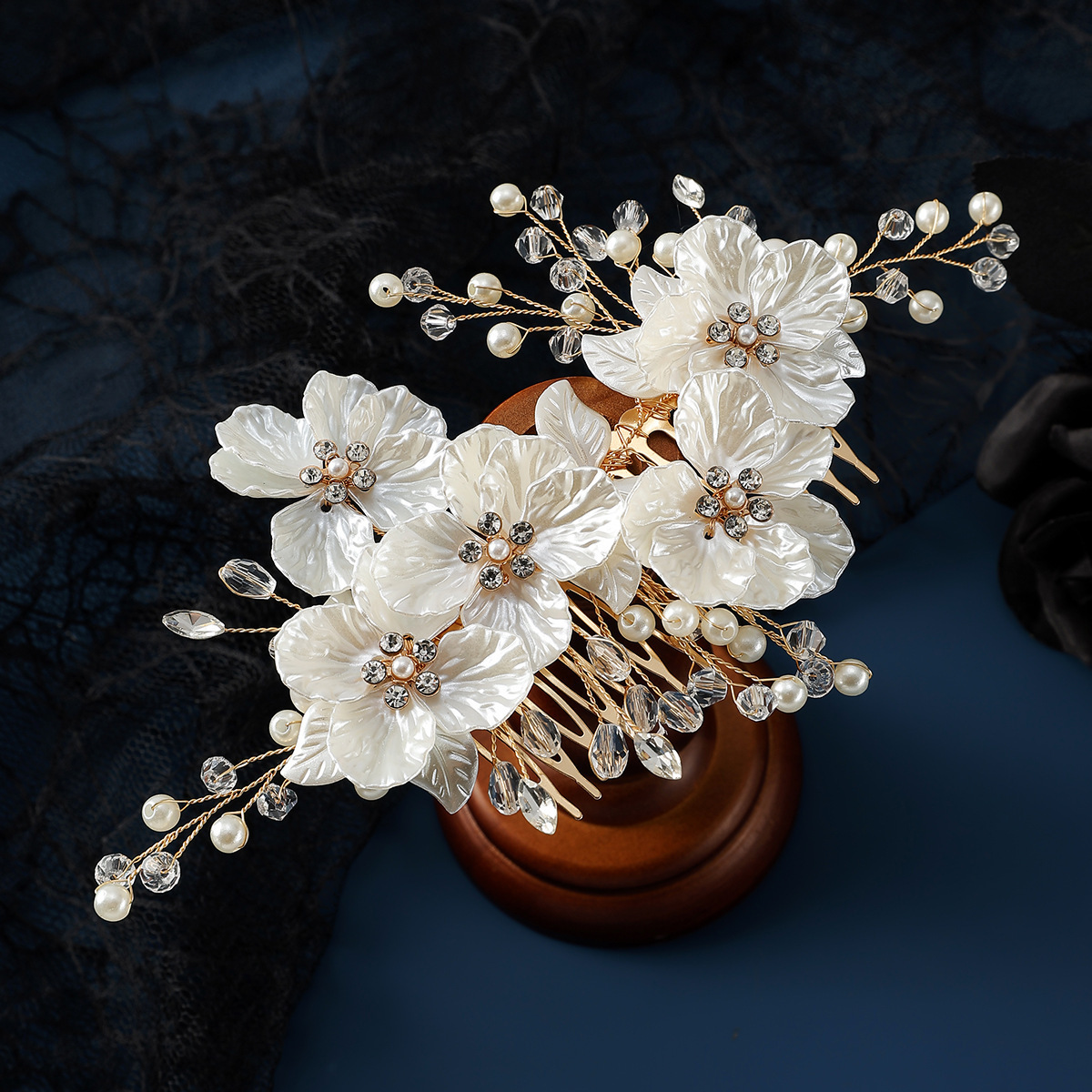 Bridal Decorative Hair Comb, Iron, with Crystal & Plastic Pearl & Brass, plated, for bridal