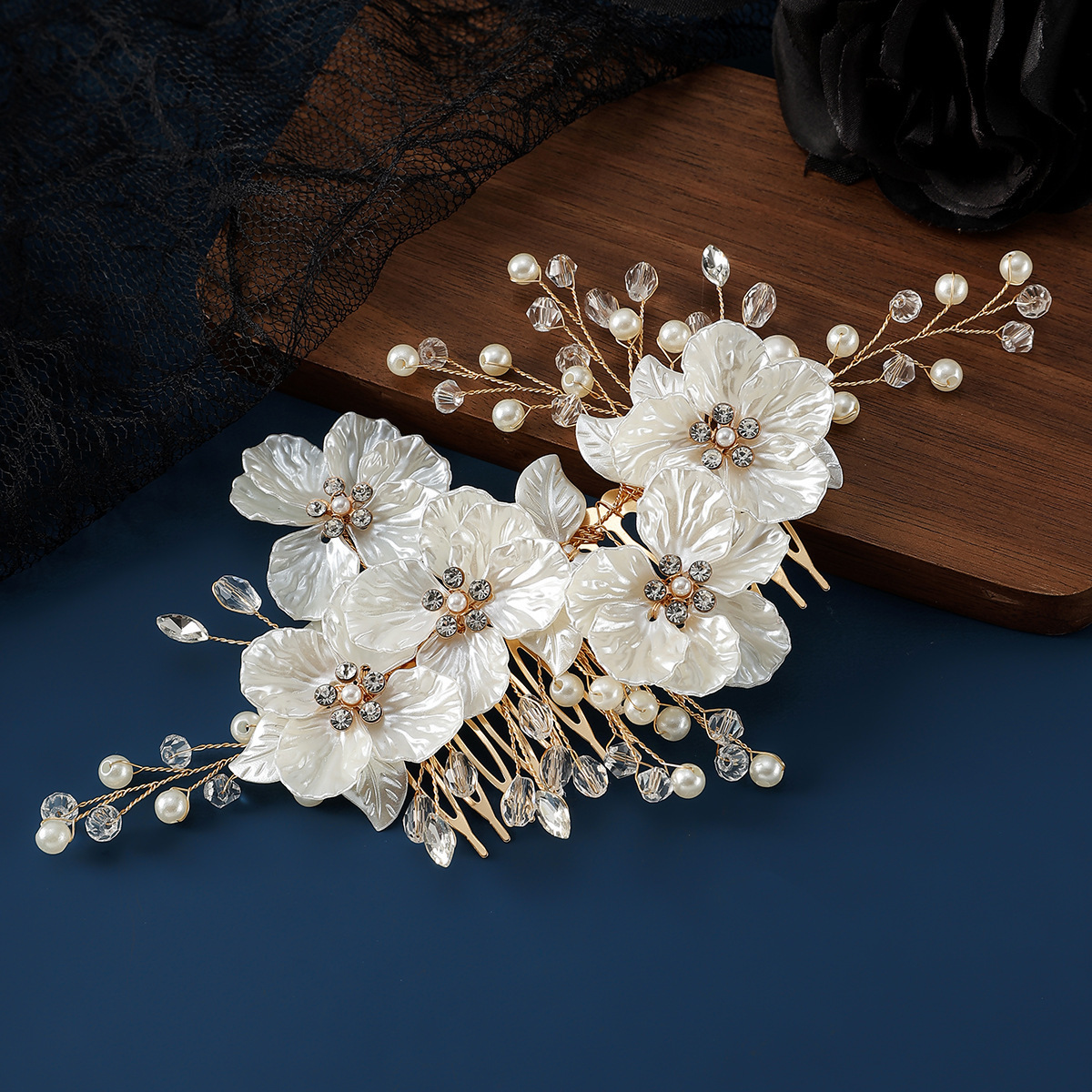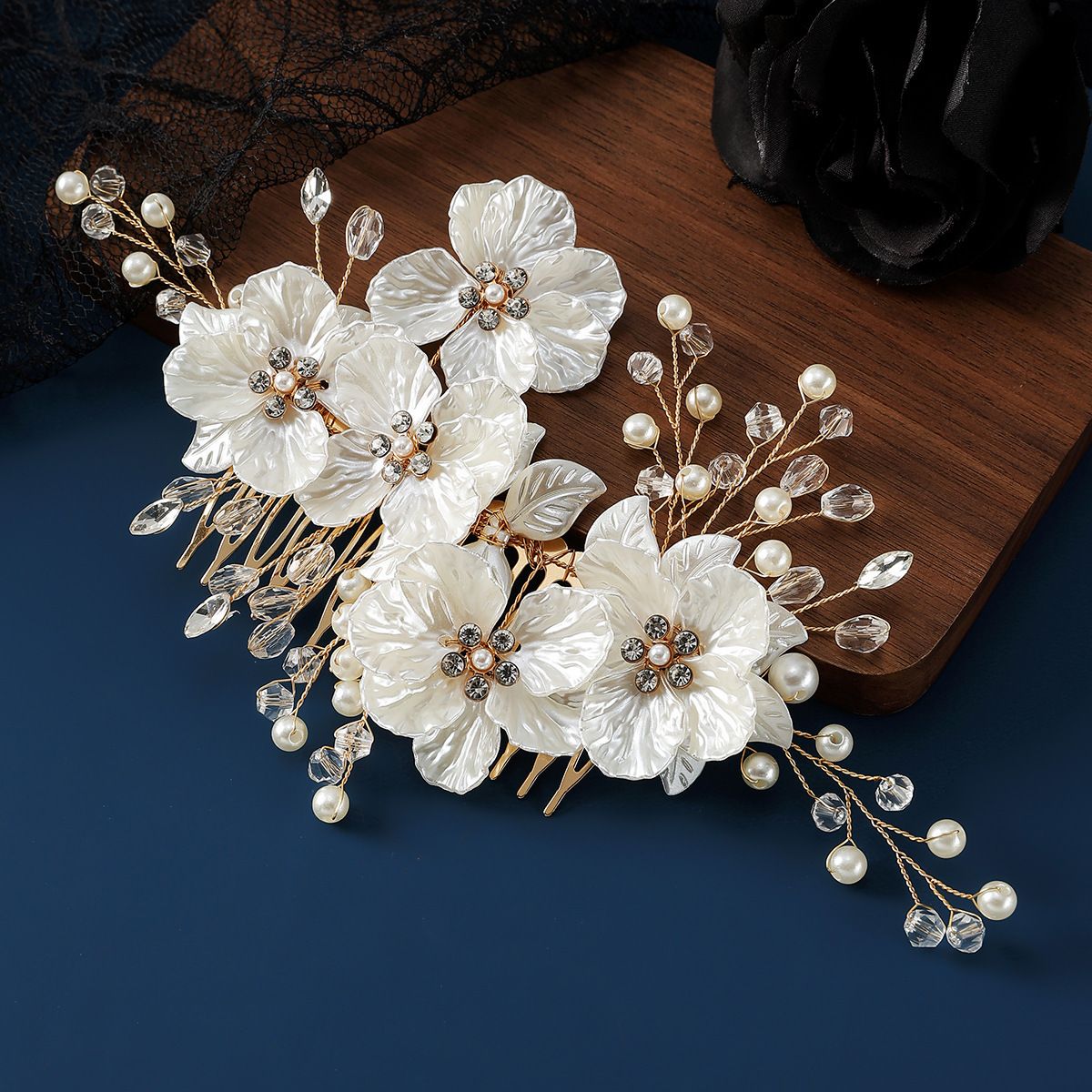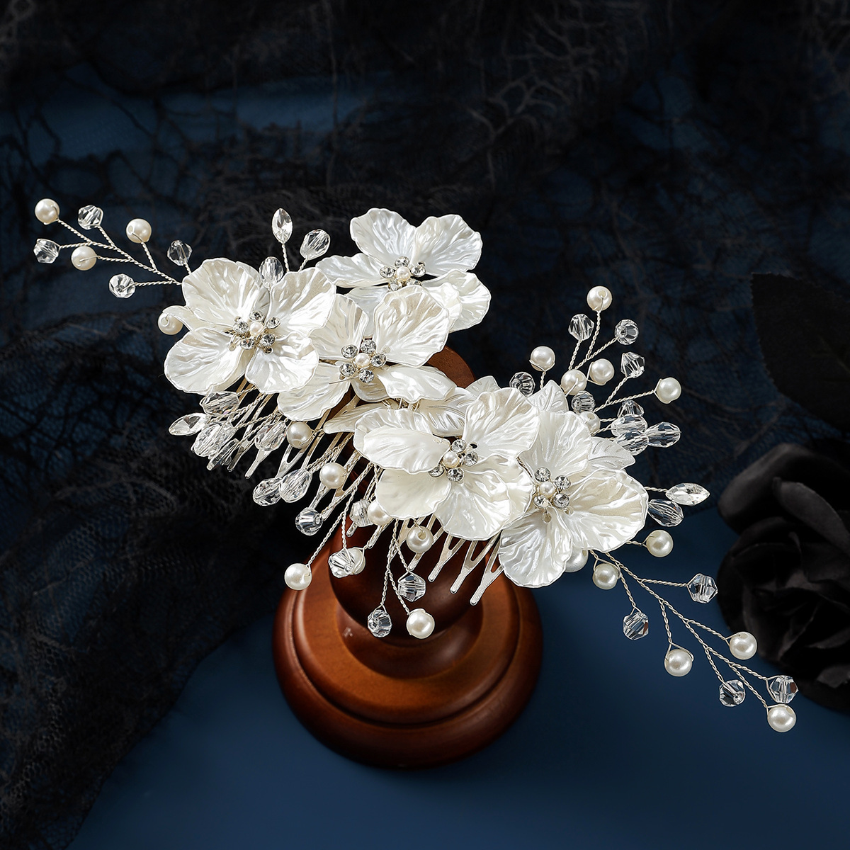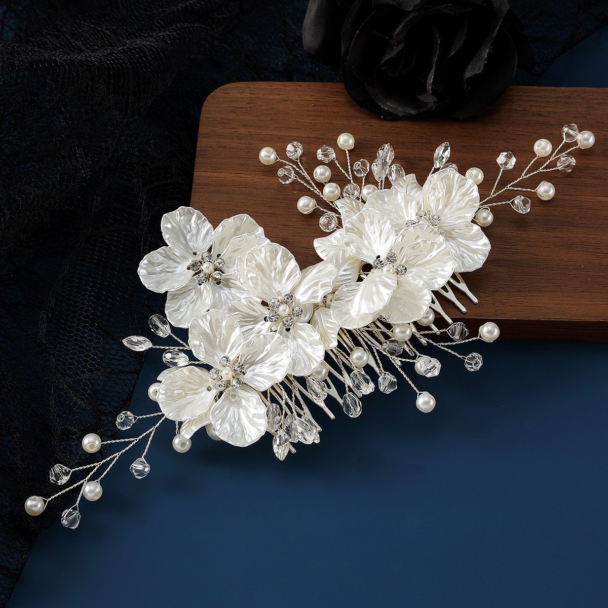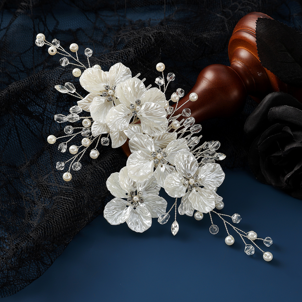Bridal Decorative Hair Comb, Zinc Alloy, with ABS Plastic Pearl, Flower, platinum color plated, handmade & for bridal & with rhinestone, lead & cadmium free